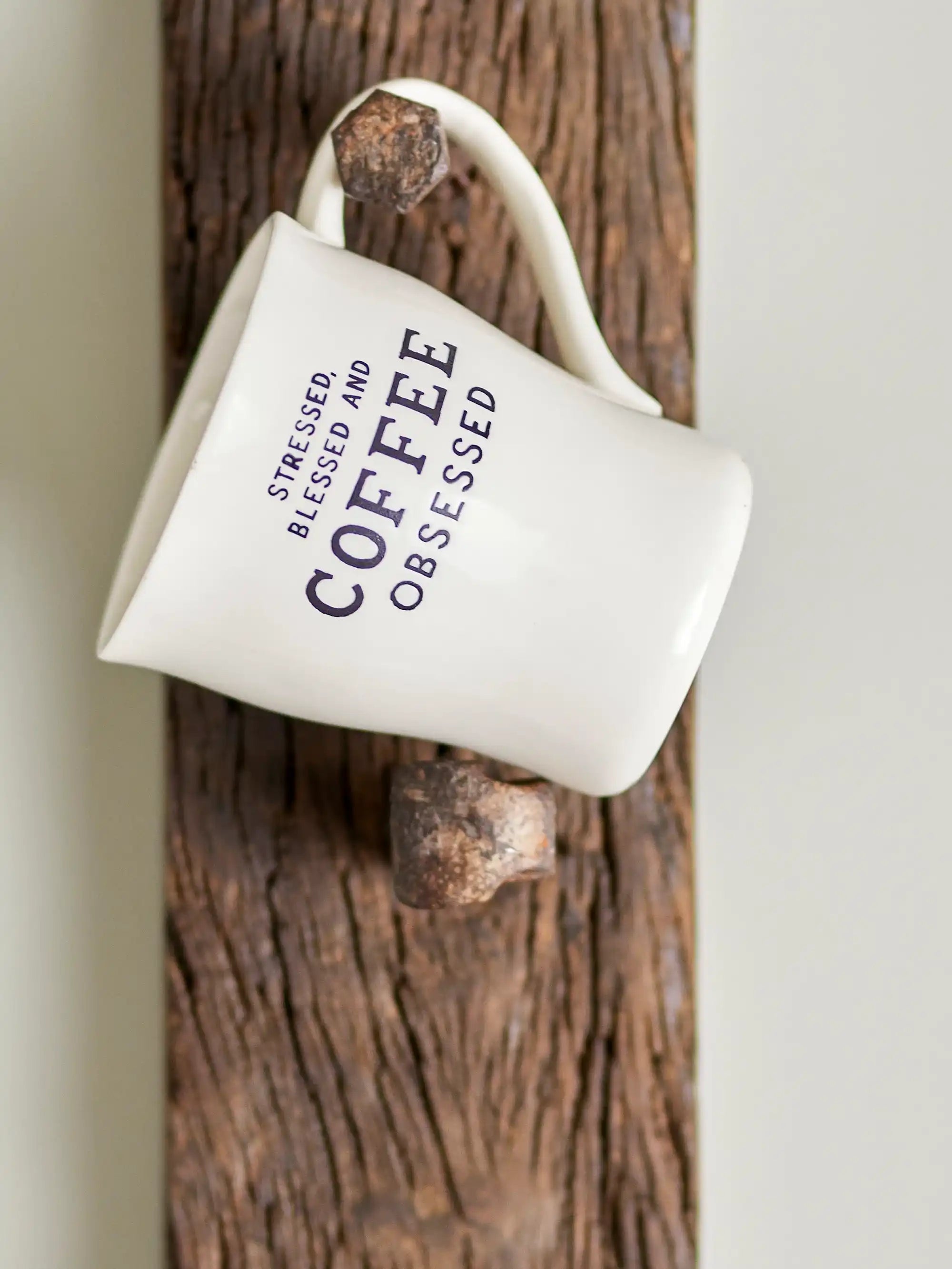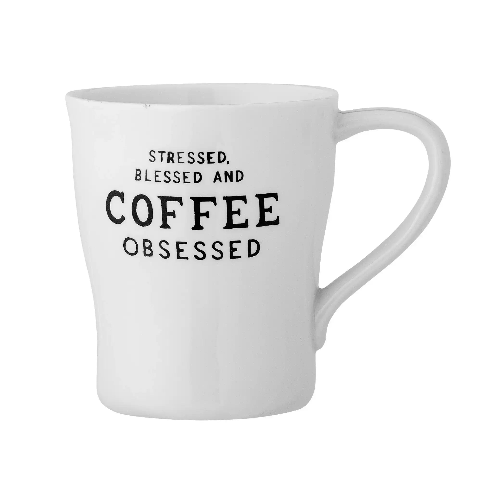Waarom je mok van Bloomingville wilt hebben: De Wendy-mok geeft je ochtendroutine een glimlach mee. Op de voorkant staat de speelse tekst “stressed, blessed and coffee obsessed.” — precies het duwtje in de rug voor een vrolijk koffiemoment. Dankzij het tijdloze silhouet en de frisse uitstraling past hij moeiteloos tussen je favoriete bekers, terwijl de knipoog opdruk het verschil maakt. Perfect voor thuis én op kantoor. Een betaalbare verrassing voor jezelf of als cadeau.