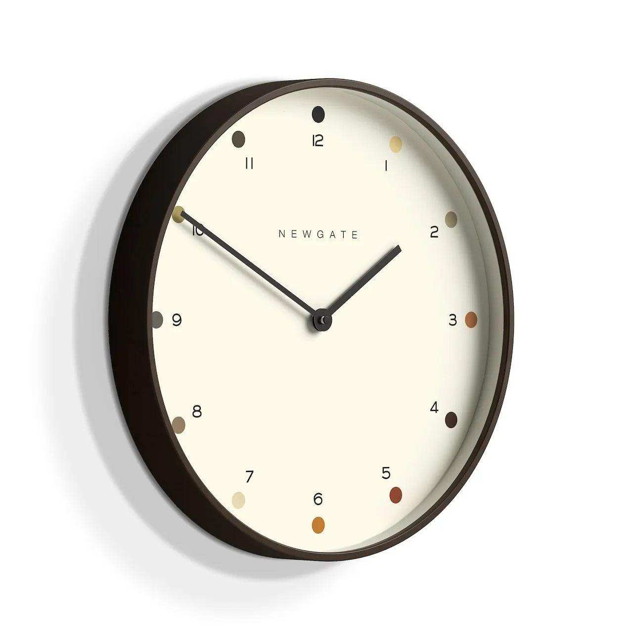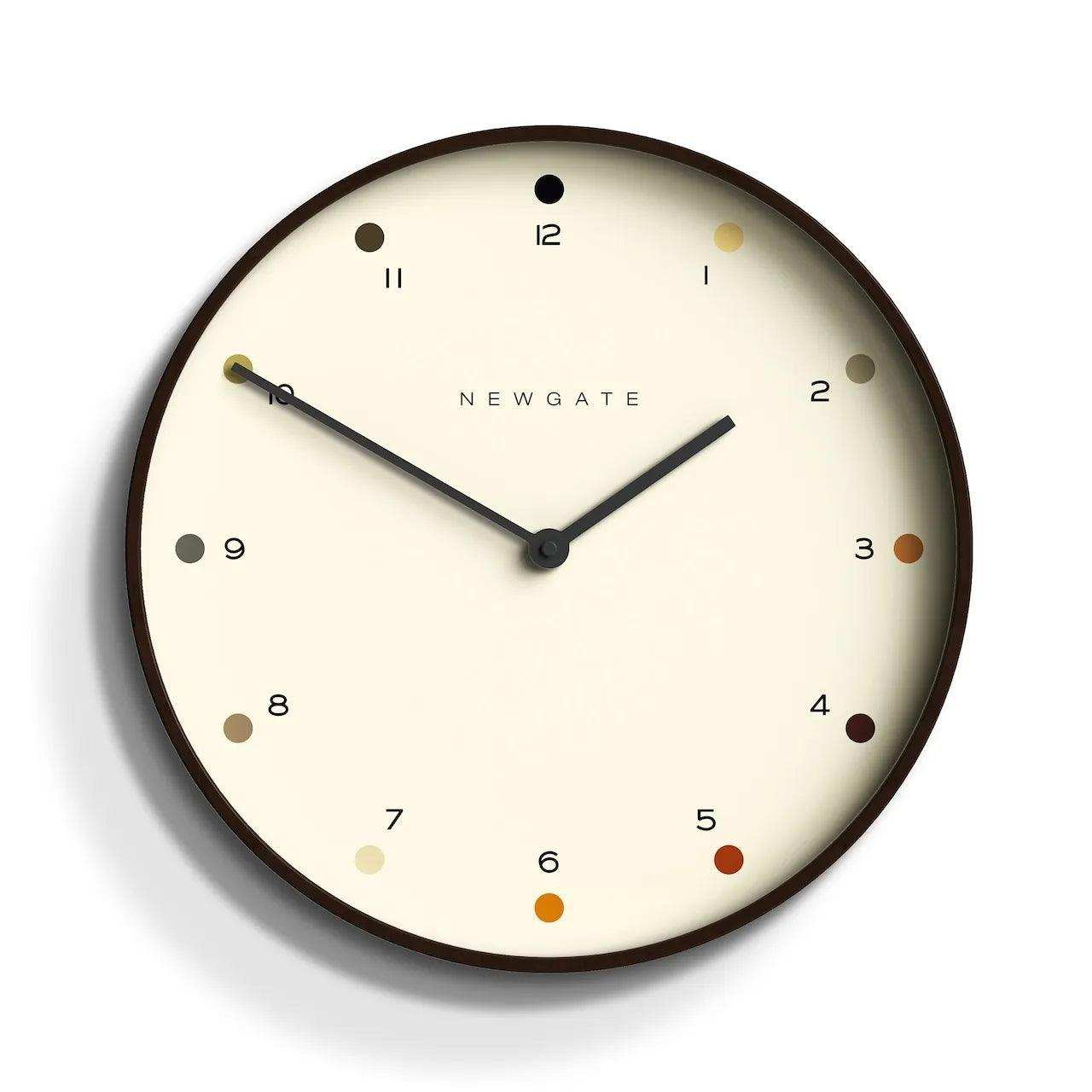 Laat je betoveren door de moderne charme van de Mr Clarke wandklok, geïnspireerd op Scandinavisch design. Met een doorsnede van 40 cm wordt de klok gekenmerkt door een donkere multiplex rand die naadloos aansluit bij de zacht creme kleurige wijzerplaat, verfraaid met minimalistische grafische cijfers en gekleurde punten.