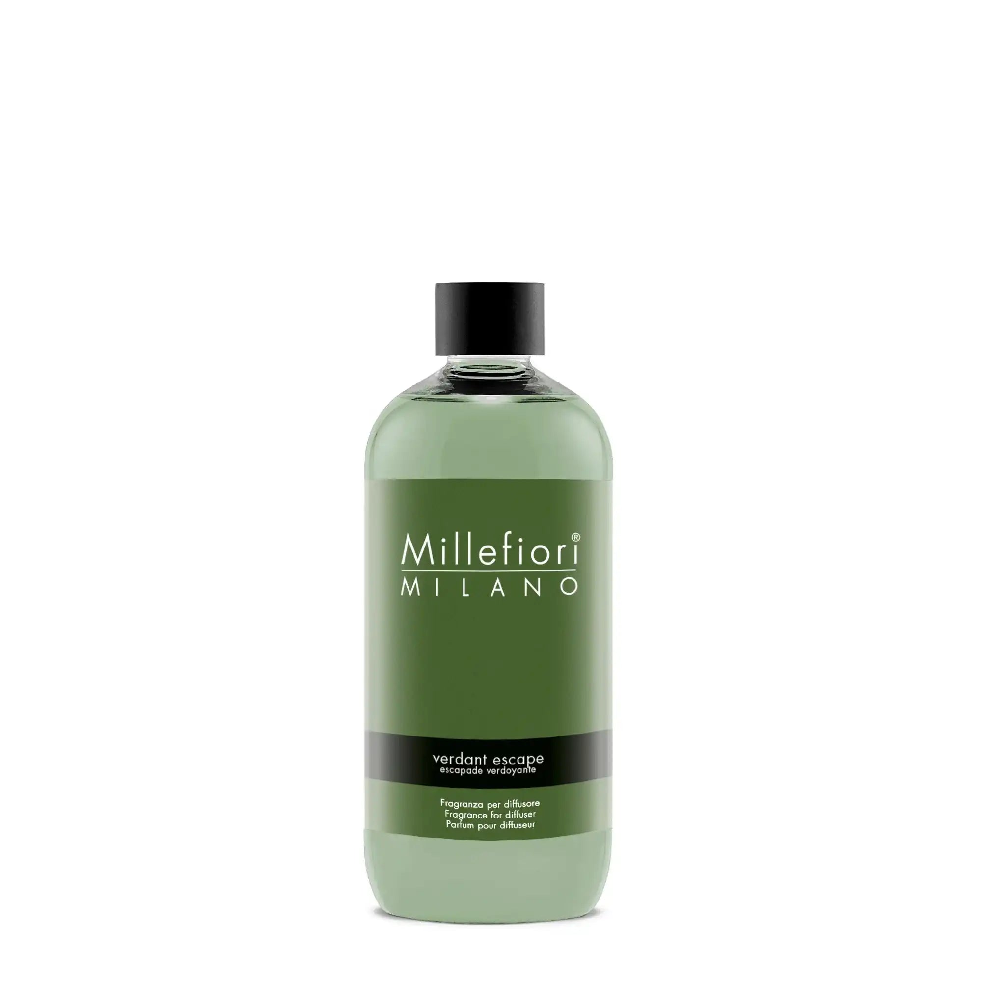 Behoefte aan een frisse geur die doet denken aan buiten zijn? De Millefiori Milano navulling Verdant Escape van 500 ml brengt de natuur naar binnen. De geur opent met sprankelende grapefruit, salie, elemi en rabarber, met een pittige toets van zwarte peper. Het hart bestaat uit frisse groene bladeren, ozonische tonen, gember en cederhout. Een geur die levendigheid en rust moeiteloos combineert – perfect voor wie houdt van een natuurlijke, verkwikkende geur.
