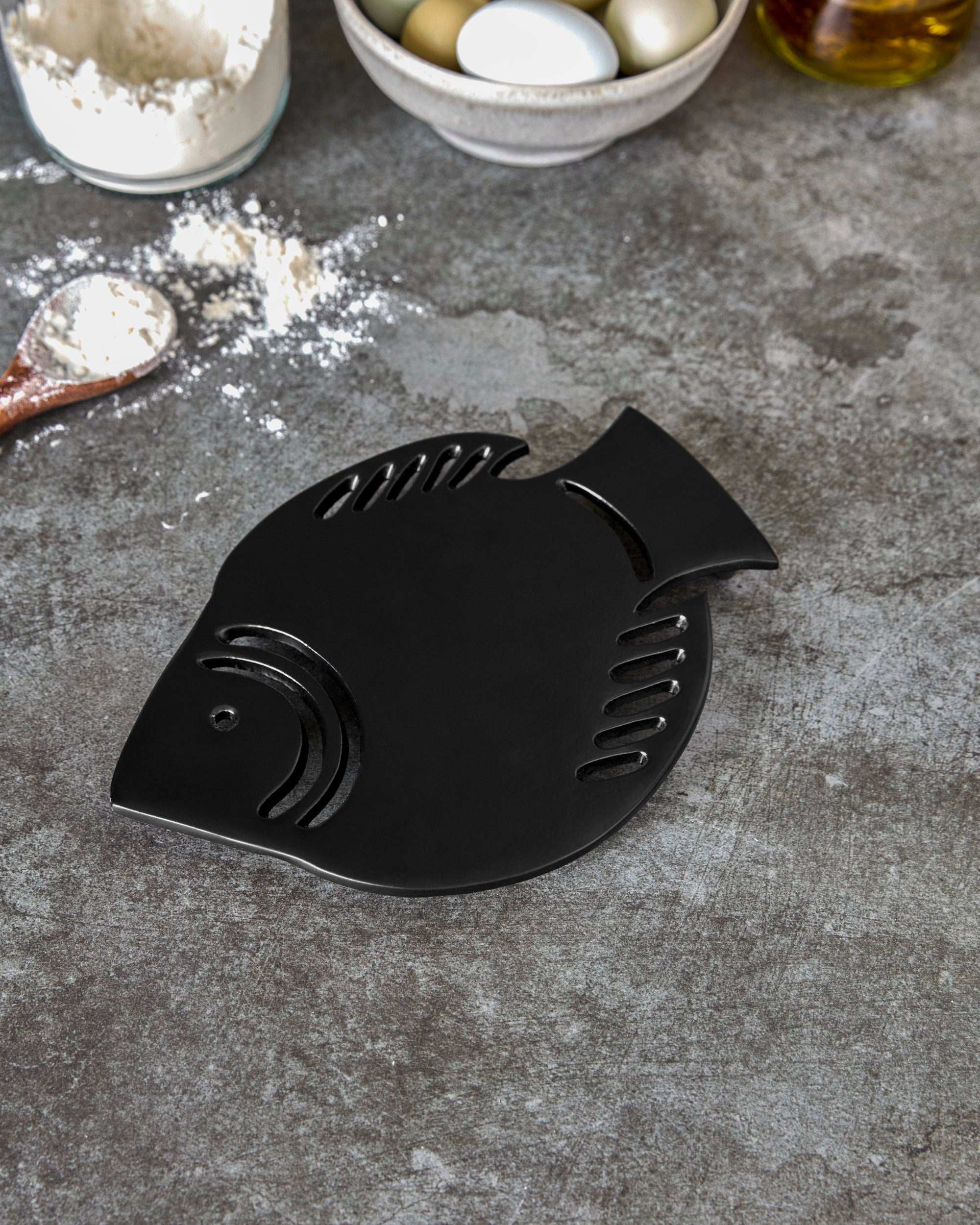 De Viro onderzetter van House Doctor is een subtiele sfeermaker voor je tafel of keuken. Gemaakt van 100% handgemaakt aluminium in een matzwarte afwerking, beschermt hij jouw oppervlaktes tegen hitte terwijl hij tegelijkertijd een stijlvol accent toevoegt. Met zijn slanke, grafische vorm (22 x 15 cm) en moderne uitstraling is hij net zo geschikt voor een minimalistisch interieur als voor een meer eclectische stijl.