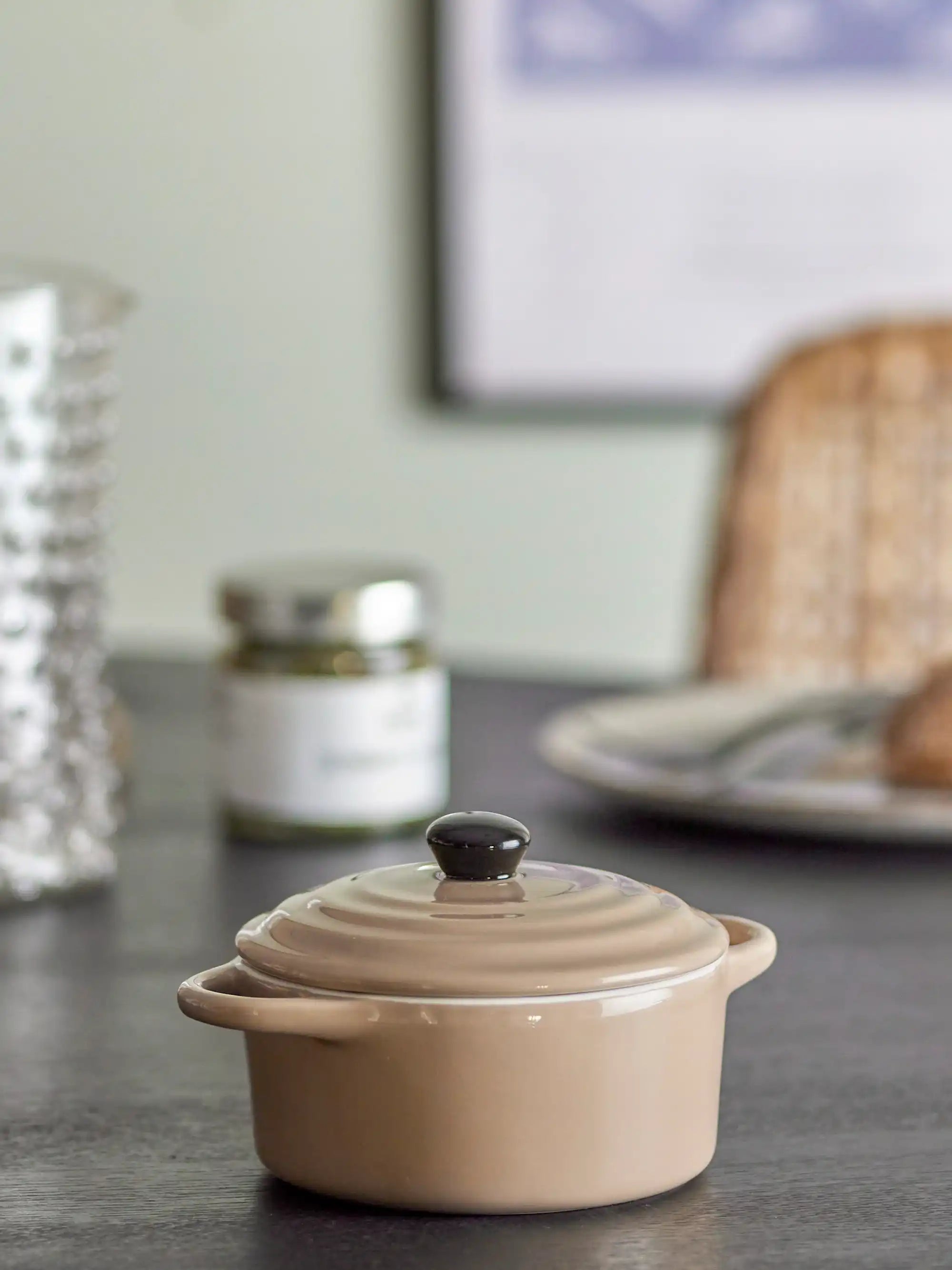 Elegante details & kwaliteit: Deze ovenschaal is vervaardigd uit stevig aardewerk en heeft subtiele, natuurlijke tinten die moeiteloos te combineren zijn. Dankzij het compacte formaat (13 cm breed, 17 cm diep en 8 cm hoog) gebruik je hem makkelijk voor ovengerechten, gratins of het serveren van kleine schotels aan tafel. Het deksel houdt gerechten langer warm en beschermt tegen uitdroging.