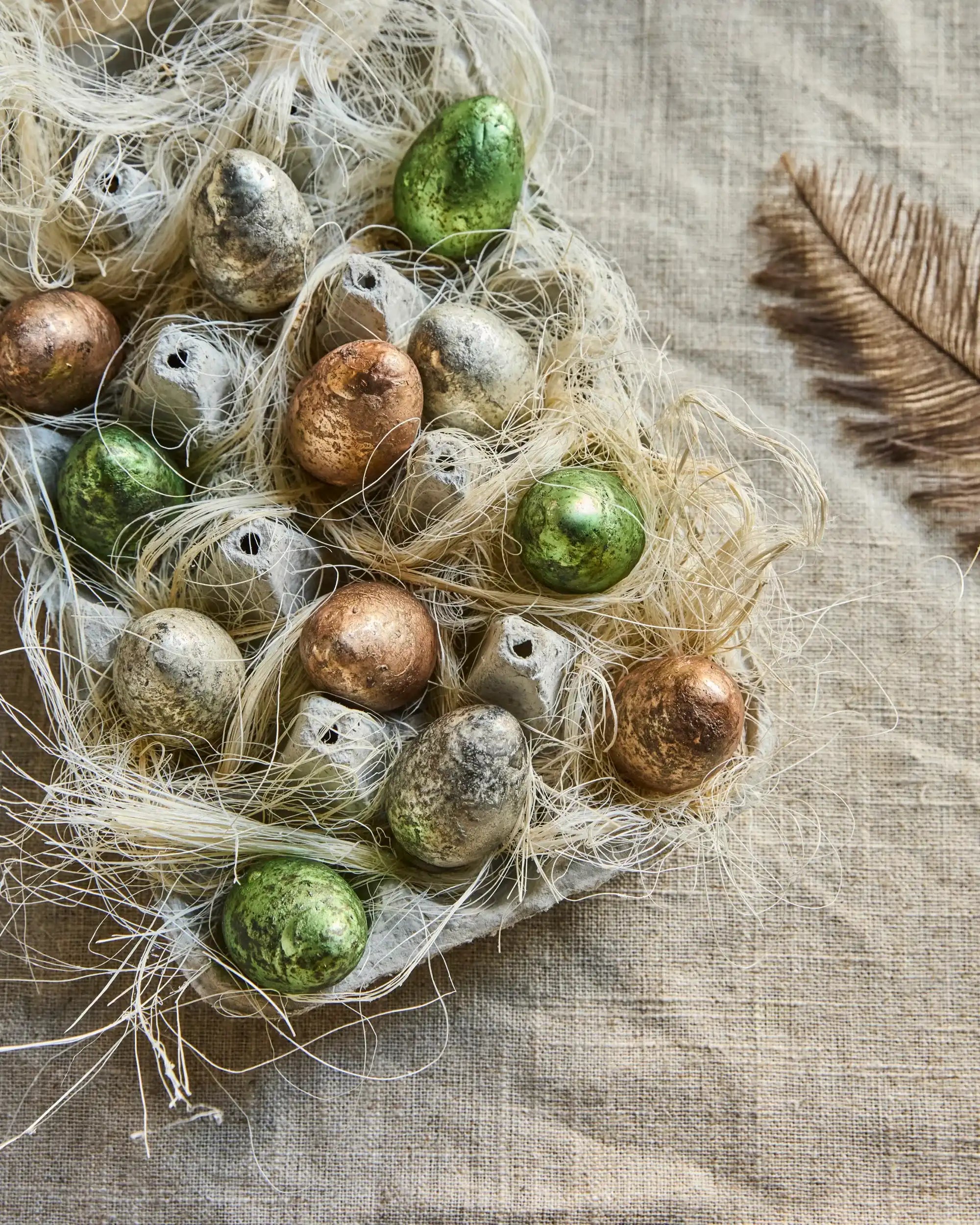 Gebruikstip: Hang de ornamenten aan forsytiatakken in een hoge vaas of leg ze als blikvanger op een schaal. Zo creëer je eenvoudig een sfeervolle paastafel of een decoratief hoekje in huis.