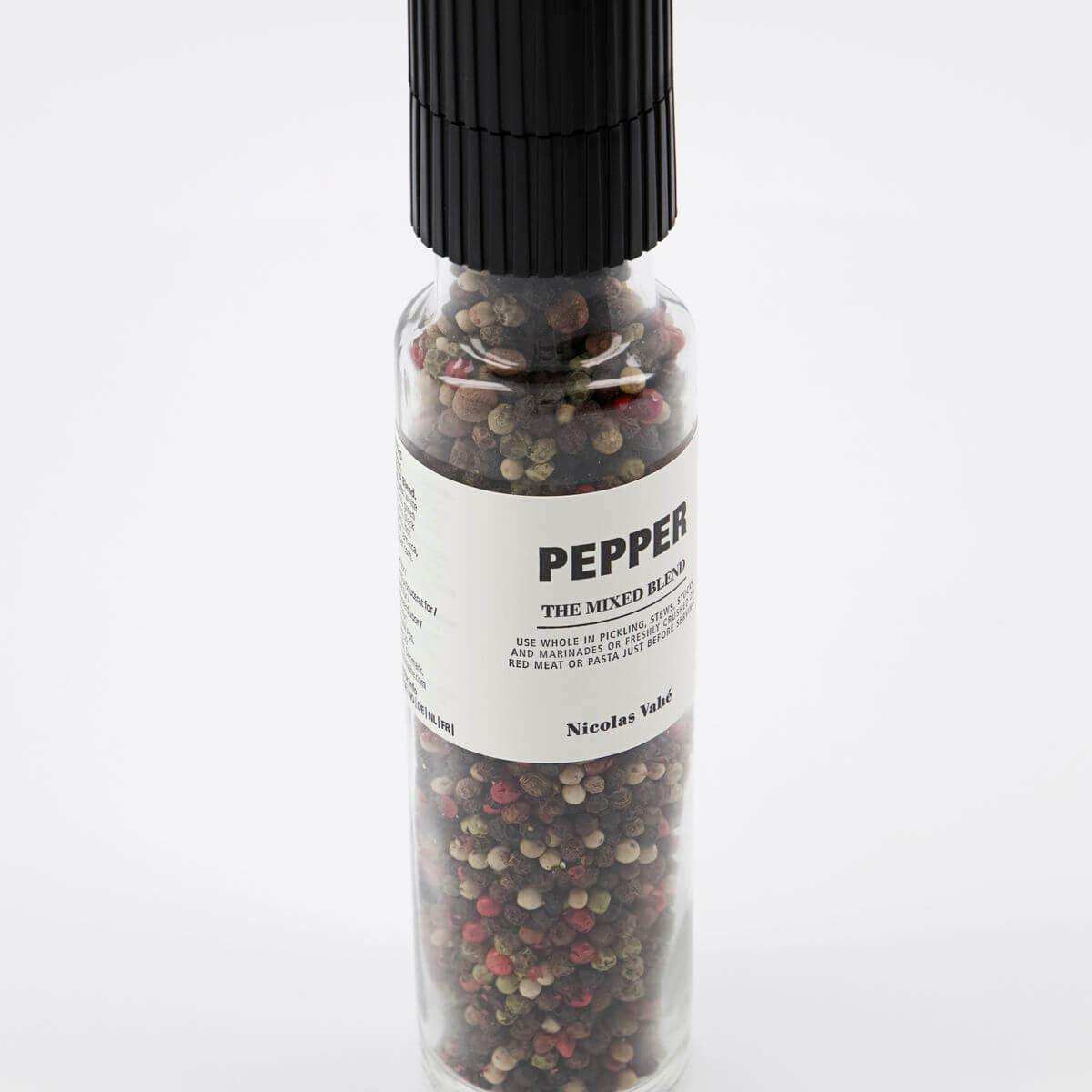 Duik in de wereld van smaak met de Klassieke Pepermix van Nicolas Vahé. Deze verfijnde blend combineert vijf verschillende soorten peper: witte, rode, groene, roze en zwarte peperkorrels, die elk hun unieke smaakprofiel toevoegen aan je gerechten.
