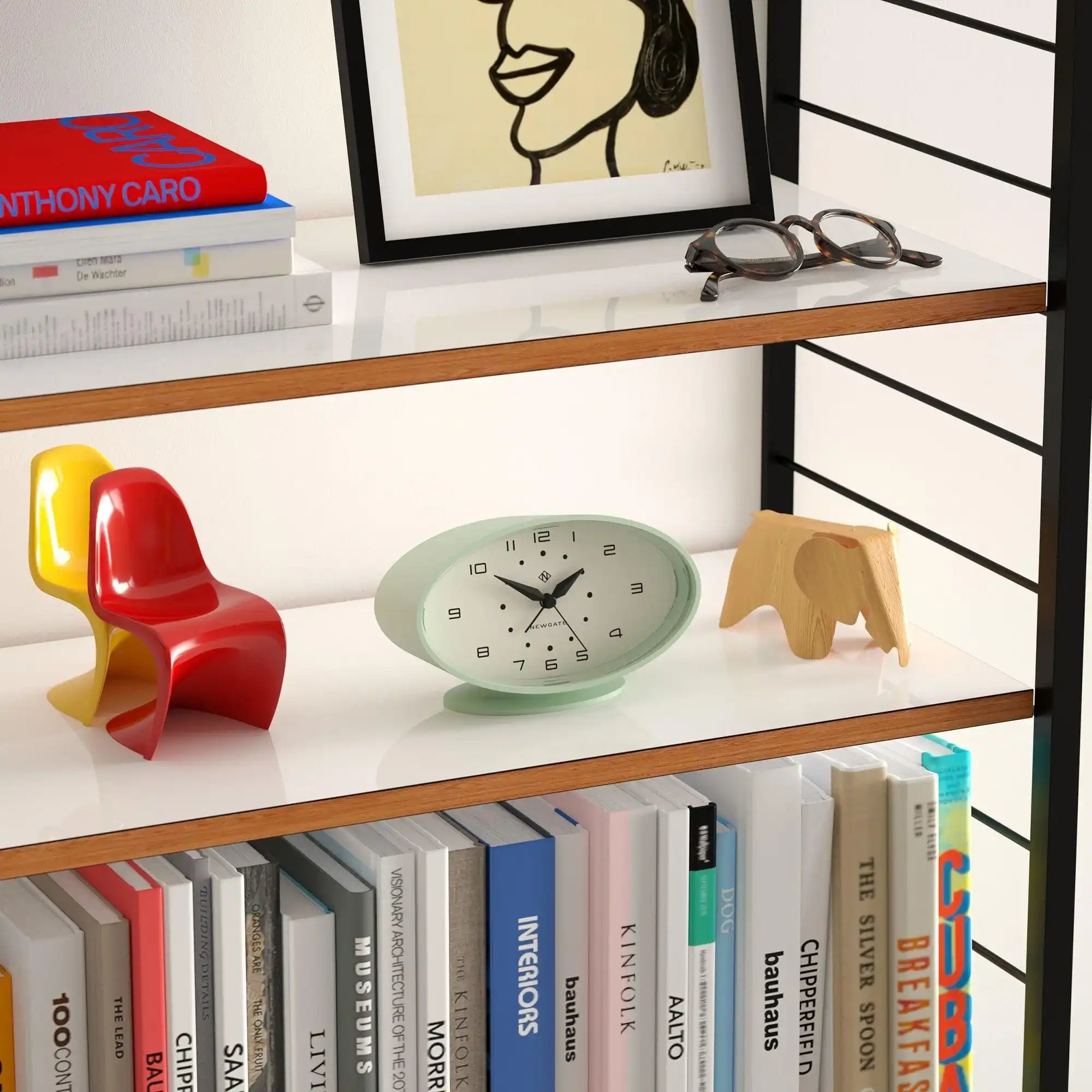 De Newgate Ronnie wekker in groen is een perfecte mix van klassiek en modern. De ovale behuizing met een zachte retro groene siliconen coating geeft deze wekker een unieke en opvallende uitstraling. De wijzerplaat heeft duidelijke Arabische cijfers en metalen wijzers, beschermd door een acryl lens. Dit tijdloze Britse ontwerp voegt een vleugje retro charme toe aan je ruimte, terwijl het toch strak en eigentijds blijft.