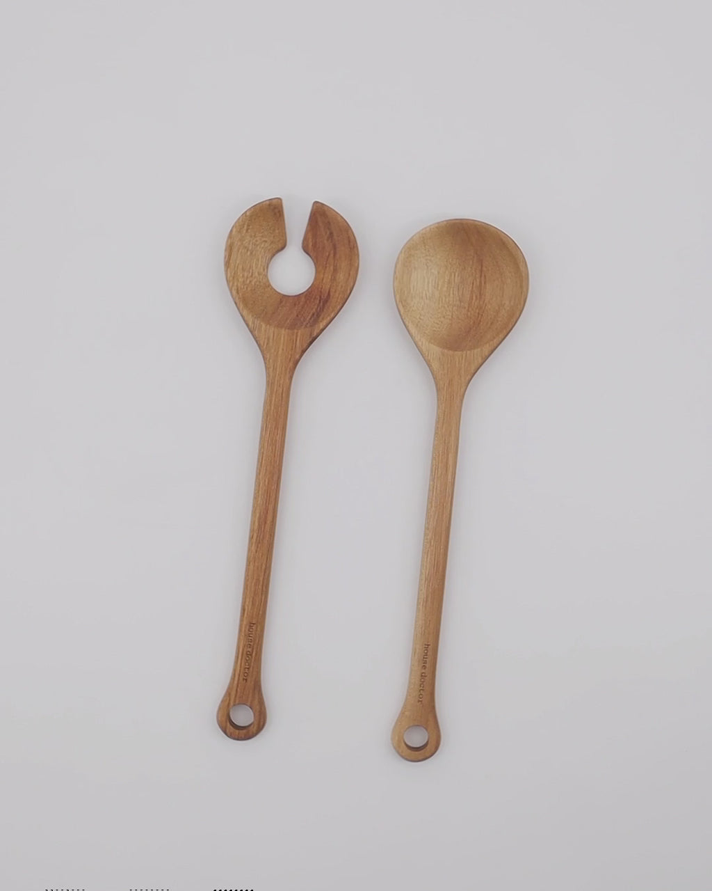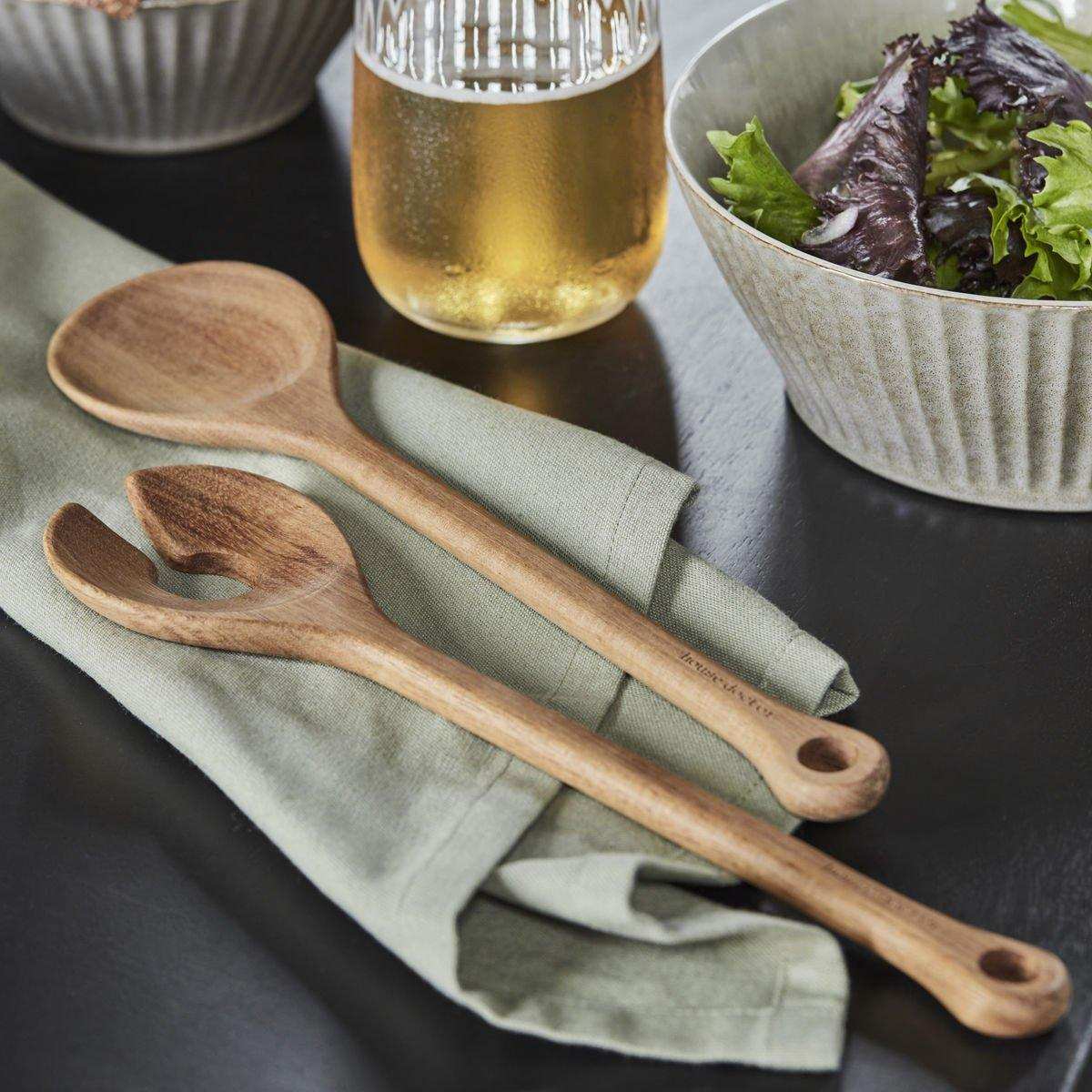 Het warme, klassieke ontwerp van dit houten slabestek verrijkt elke tafelschikking met een informele en natuurlijke uitstraling. Perfect voor het opscheppen van frisse salades, deze bestekset maakt het gemakkelijk voor je gasten om zichzelf te bedienen en draagt bij aan een ontspannen en gastvrije sfeer.