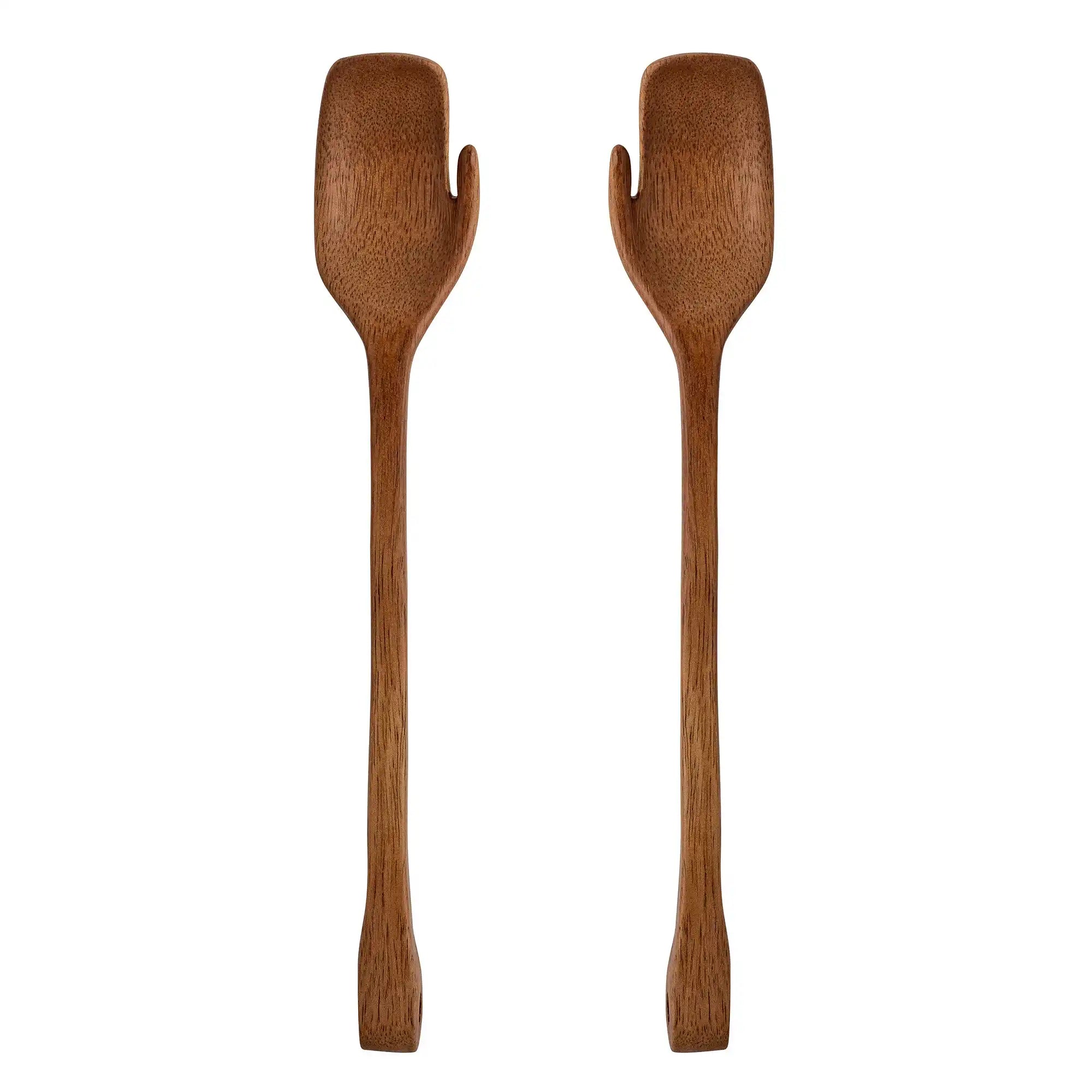 Details & materiaal: Dit setje bestaat uit twee serveerlepels, handgemaakt van donker gebeitst mangohout dat bekend staat om zijn stevigheid en rijke uitstraling. Met hun lengte van 25,5 cm en elegante details bieden ze niet alleen comfort, maar voegen ze ook een natuurlijke touch toe aan elke maaltijd.