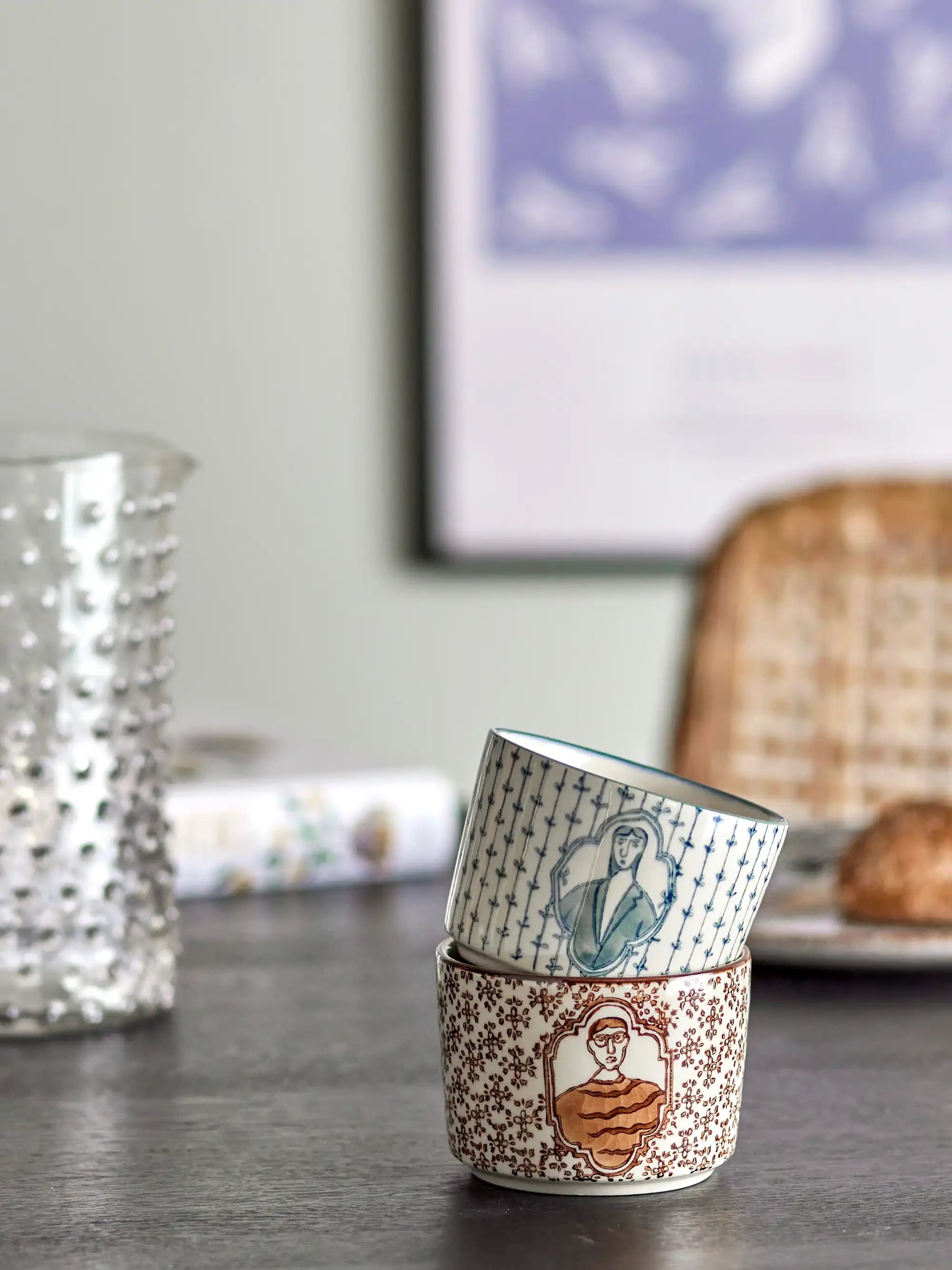 Details & materiaal: De schalen zijn vervaardigd uit stevig aardewerk en hebben een doorsnede van 9 cm en een hoogte van 6 cm: ideaal voor kleine gerechtjes, dessert of heerlijke snacks. De blauwe, decoratieve patronen zijn handgemaakt, wat ze een karaktervolle Scandinavische touch geeft en een warm accent brengt in ieder interieur.