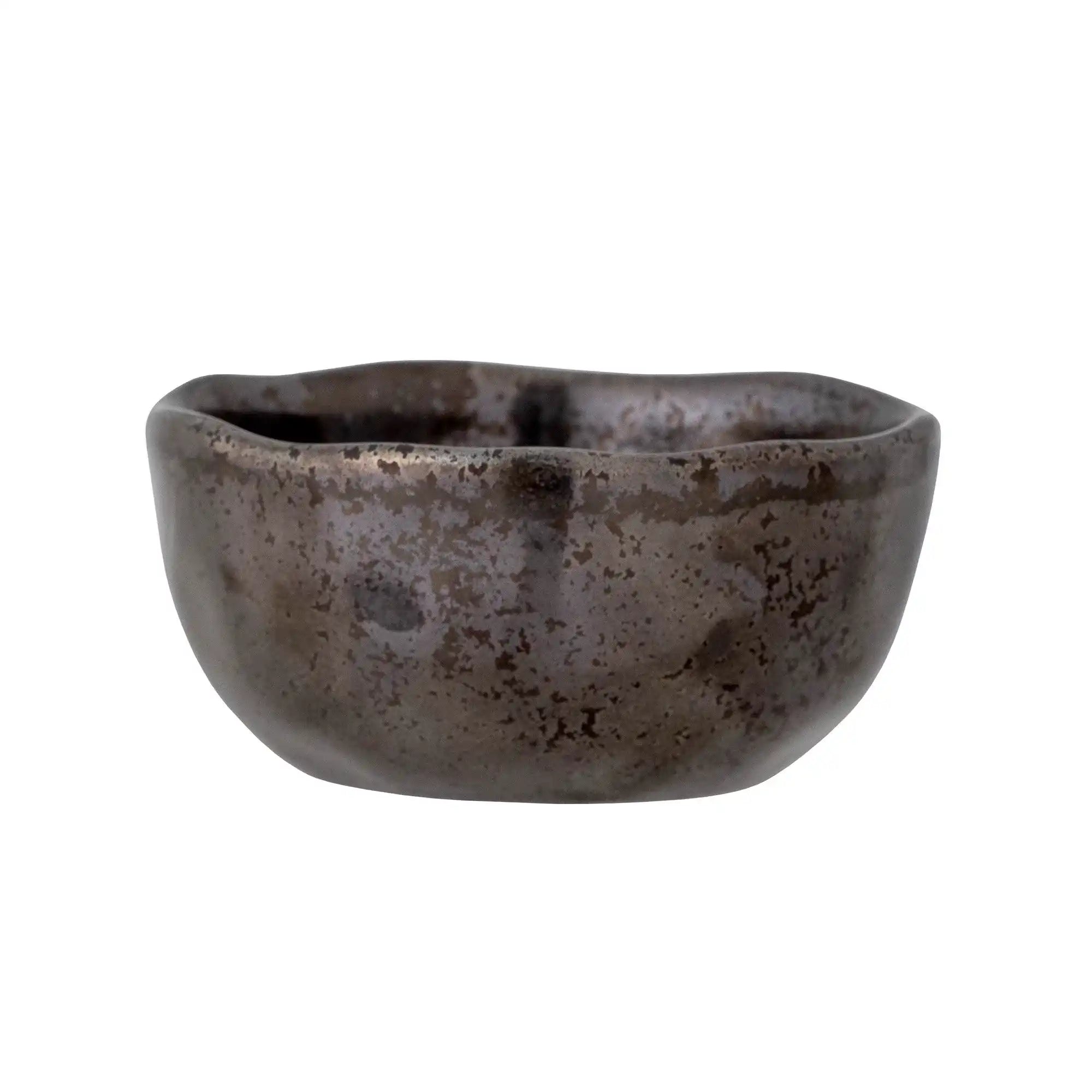 Details & materiaal: Deze schaal is vervaardigd van stevig aardewerk en afgewerkt met een reactief glazuur in een diepe bronstint. Dankzij ø 10.5 cm past hij mooi op elk gedekt bord of serveerplank, zonder te overheersen. Het reactieve glazuur zorgt voor unieke schakeringen en een fraaie metallic look; geen twee exemplaren zien er exact hetzelfde uit. De onregelmatige rand versterkt het handgemaakte gevoel en geeft je setting textuur en diepte.