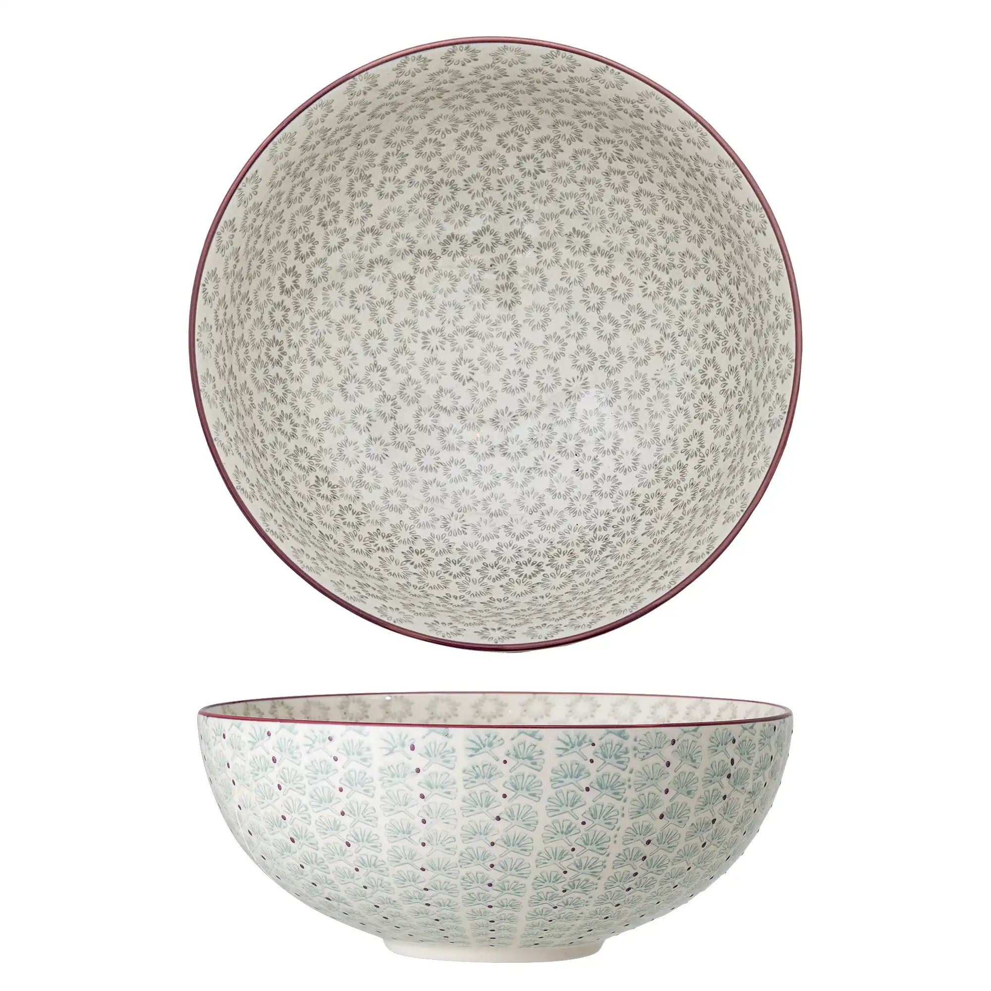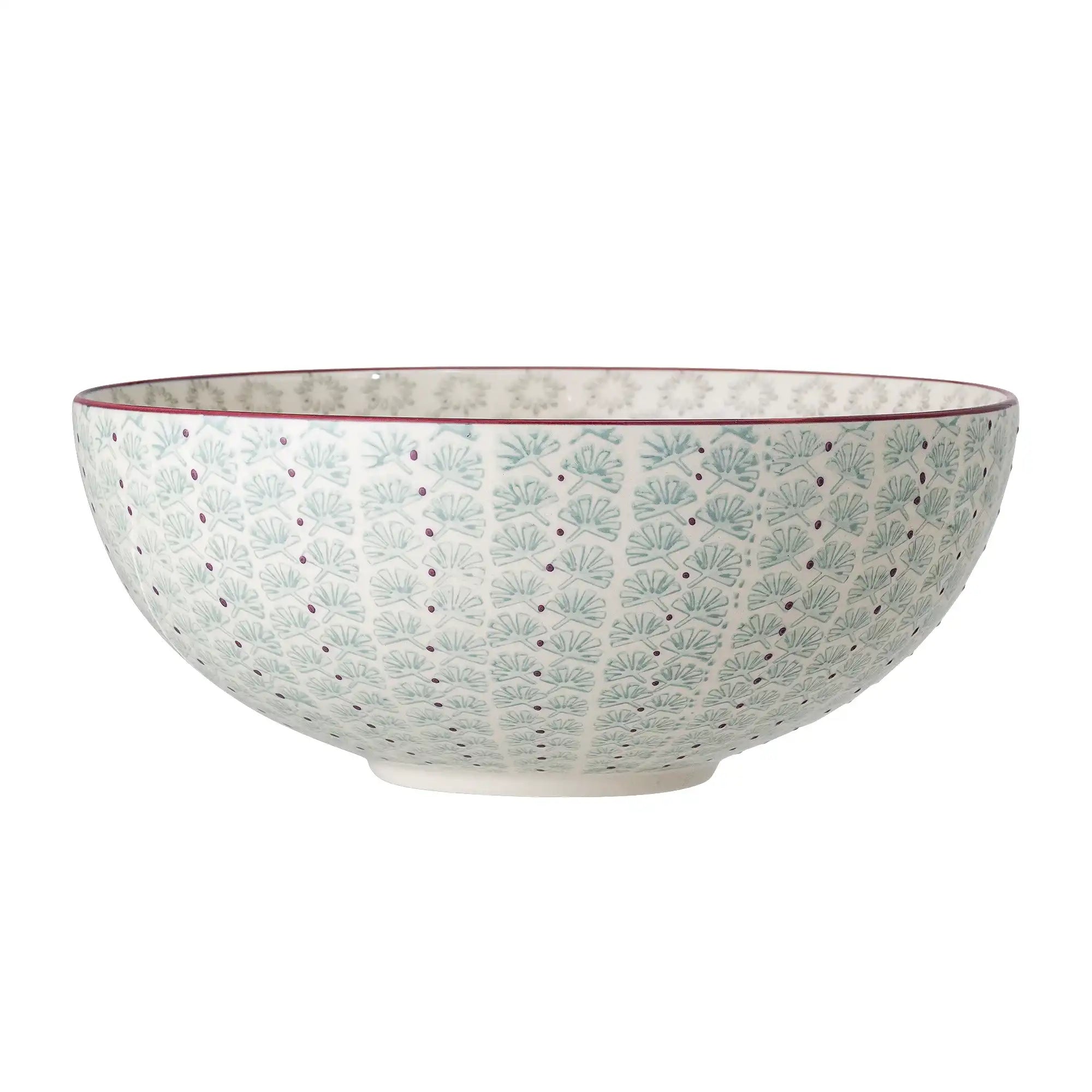 Details & materiaal: Deze royale schaal van Bloomingville heeft een diameter van 28,5 cm en is vervaardigd uit stevig aardewerk. Het subtiele groene glazuur straalt Scandinavische rust uit, terwijl de kwaliteit van het materiaal zorgt dat je er lang plezier van hebt – ideaal voor dagelijks gebruik of speciale gelegenheden.