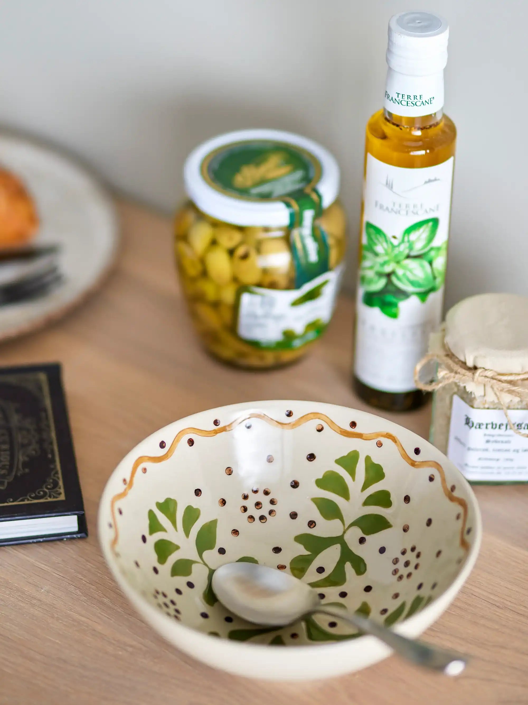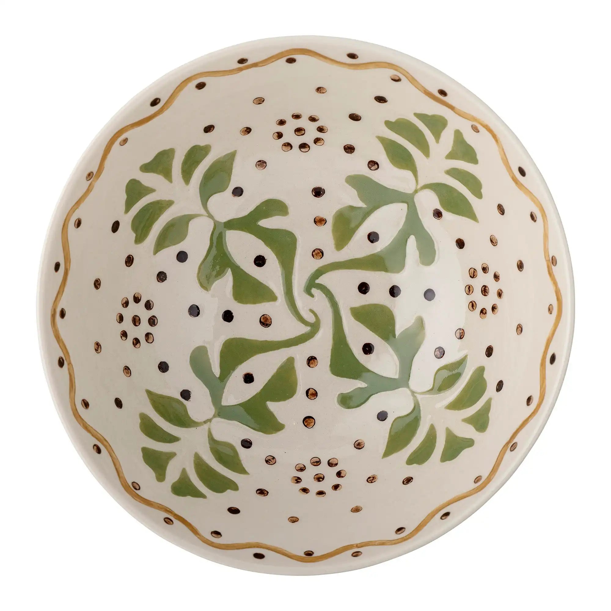 Details & materiaal: Elke schaal is uniek dankzij de met de hand aangebrachte penseelstreken in zachte groene en bruine tinten. Met zijn formaat van 19 cm doorsnee en 7,5 cm hoog is deze aardewerken beauty perfect voor salades, fruit of een mooie pastagerecht. Het stevige materiaal voelt robuust aan, terwijl het organische, Scandinavische design jouw tafelschikking compleet maakt.