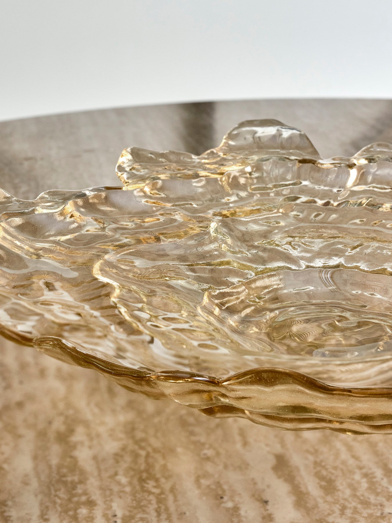 Details & materiaal: Gemaakt van glas met een gespoten kleurlaag in een zachte naturel / beige tint, heeft Asimi een lichtdoorlatende finish en subtiel gegolfde contouren. Dat zorgt voor diepte en nuance, terwijl het geheel toch licht blijft ogen. Met ø 38.5 cm biedt de schaal ruim plaats voor een stijlvol stilleven op tafel of in de keuken. De keuze voor glas houdt de vorm slank en elegant, waardoor de schaal zich makkelijk voegt in een rustige, doordachte setting.