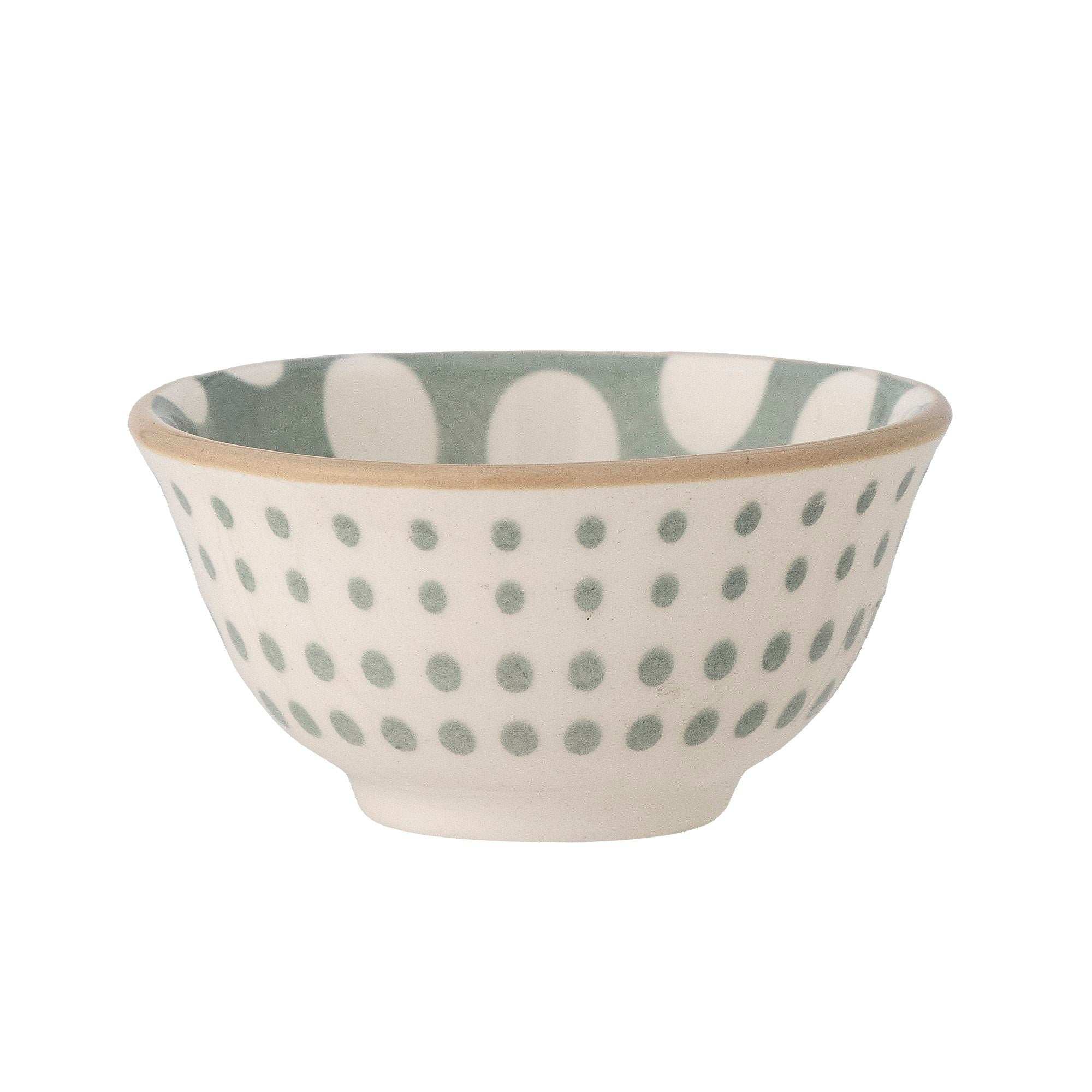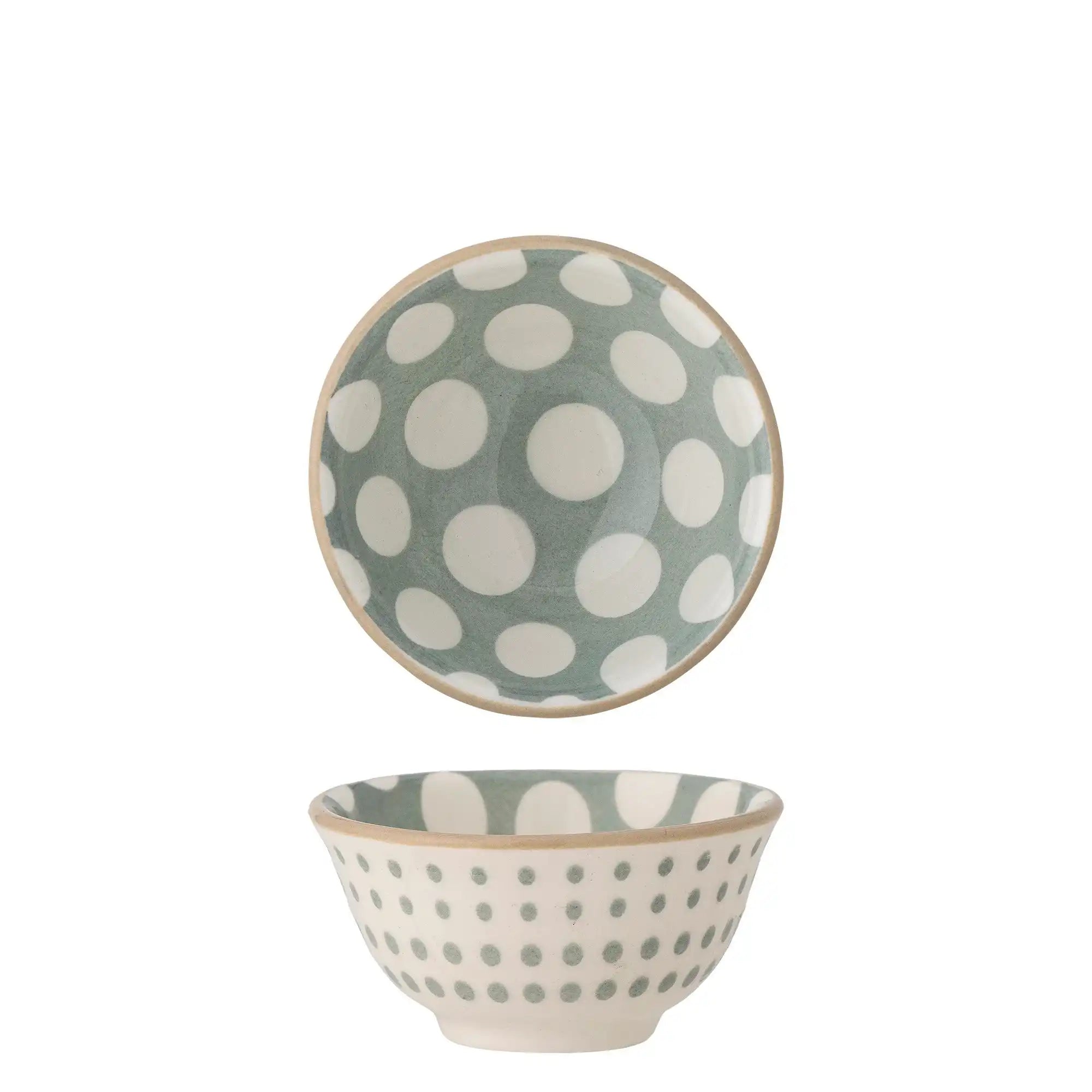 Details & materiaal: Gemaakt van aardewerk in een frisse groentint met een fijn, gedetailleerd patroon in blauw en beige/naturel. Met ø 6.5 cm is het een compact schaaltje dat weinig plaats inneemt, maar net genoeg ruimte biedt voor kleine hapjes en toppings. Aardewerk voelt aangenaam en staat stabiel, waardoor het schaaltje zowel op de ontbijttafel als bij borrelmomenten z’n plek vindt. Het ingetogen ontwerp is stijlvol en tijdloos, waardoor je het eenvoudig combineert met bestaand servies.