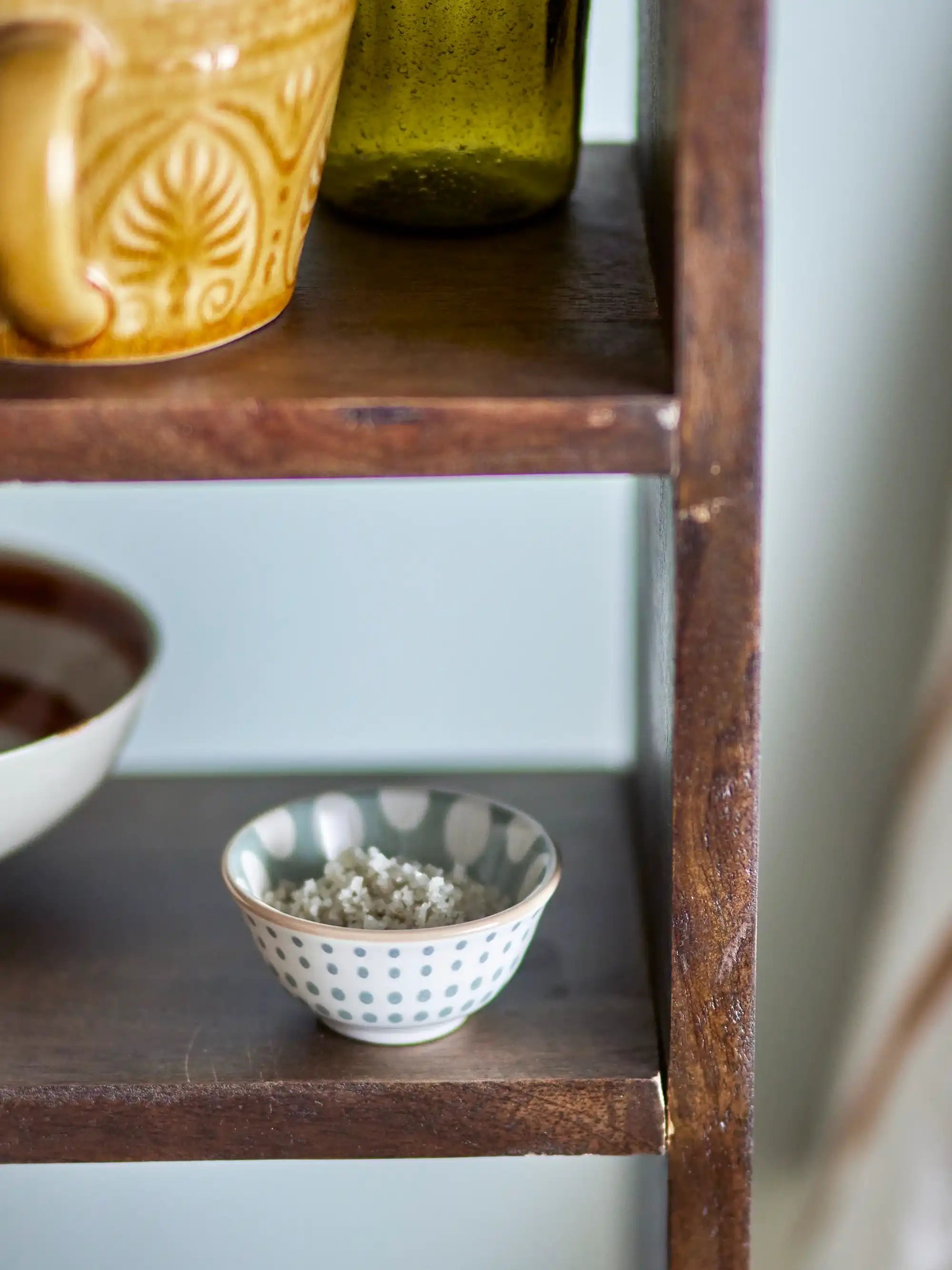 Waarom je dit schaaltje van Bloomingville wilt hebben: Een kleintje met karakter: dit groen gekleurde Maple schaaltje van Bloomingville brengt precies dat speelse accent dat je tafel nodig heeft. Het gestippelde dessin in blauw en naturel geeft elk gedekte moment een informele, huiselijke sfeer en laat zich moeiteloos combineren. Gebruik het voor dips, olijfjes of een snufje zeezout, of geef je keukenplank wat kleur door het zichtbaar op te bergen. Voor een Scandinavische look mix je verschillende kleuren en patronen – zo creëer je een persoonlijke setting die meteen klopt.