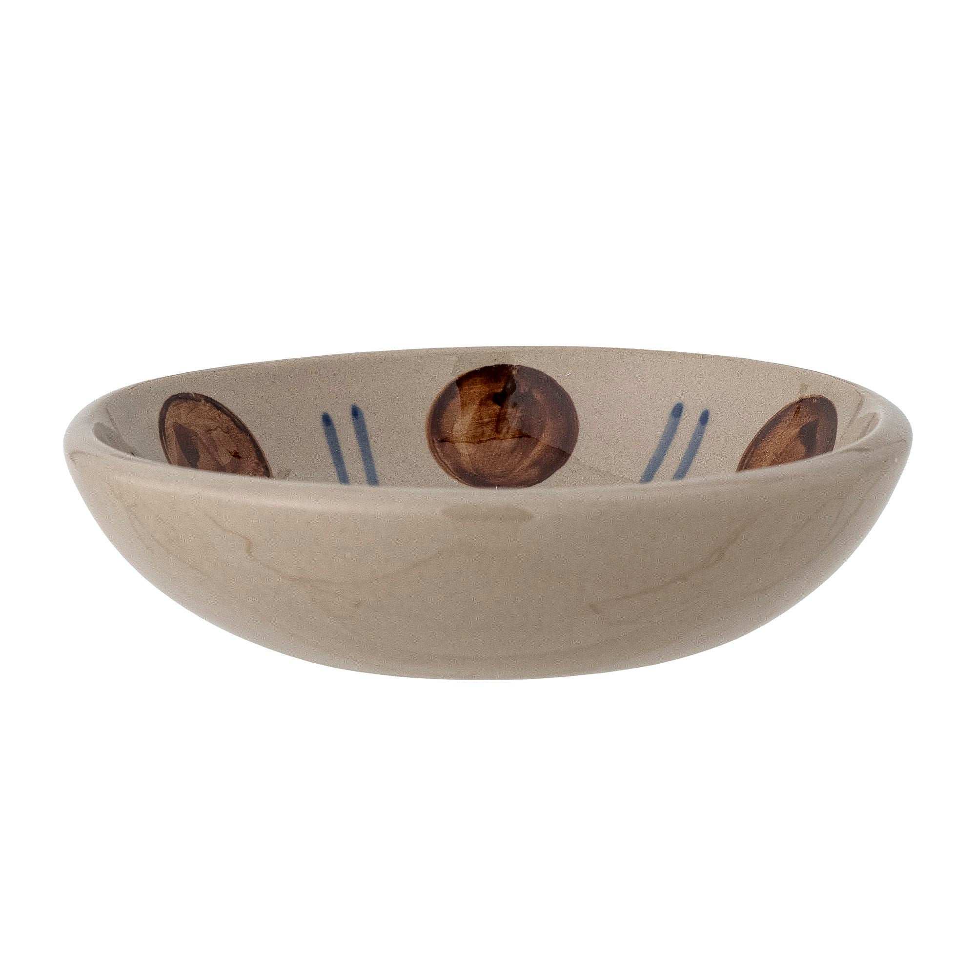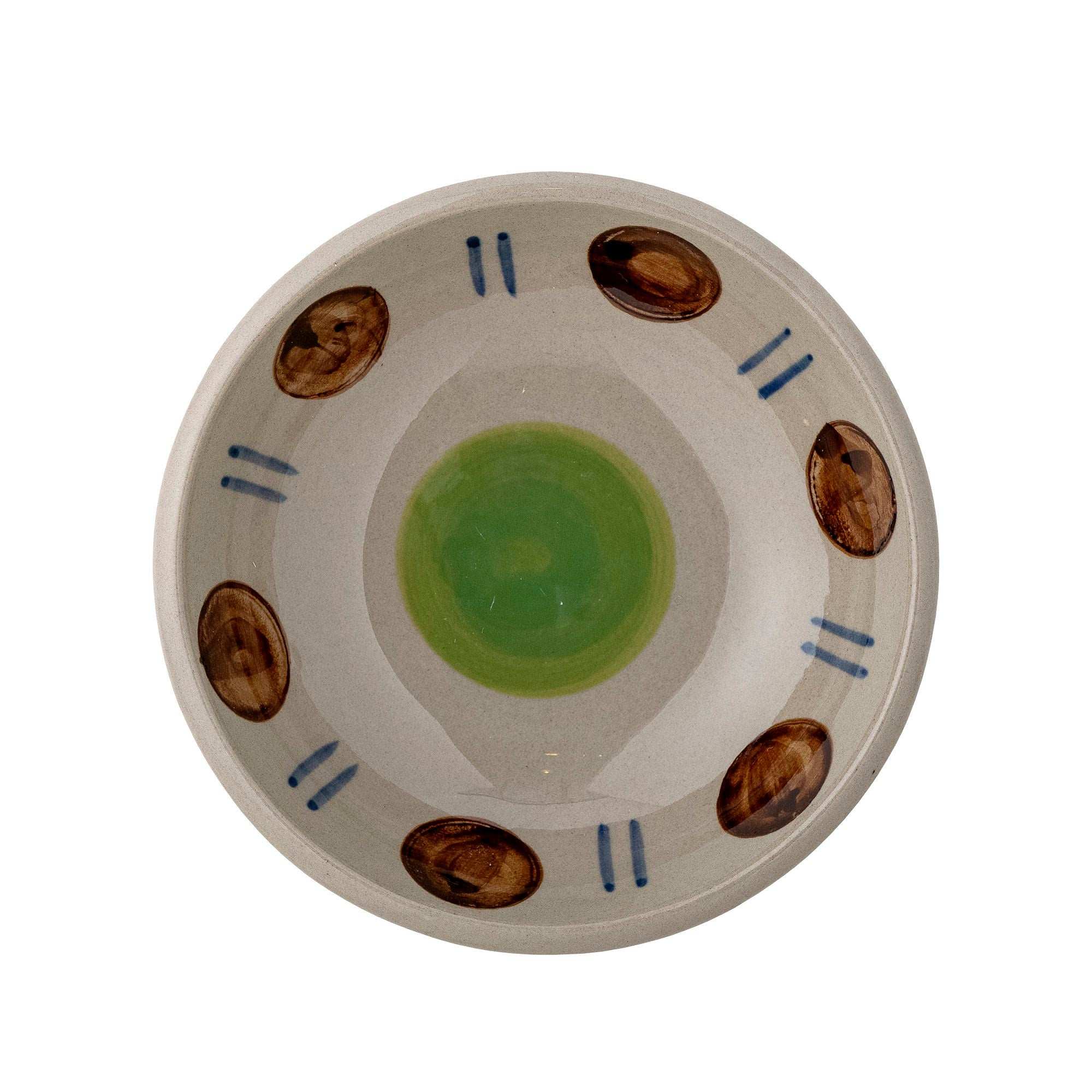 Details & materiaal: De schalen zijn gemaakt van stevig aardewerk en hebben een compact formaat van ø 11 cm. De handbeschilderde, organische penseelstreken geven een levendig patroon dat mooi combineert met hout, linnen en glas. Dankzij het formaat staan ze fraai op een wandplank, vensterbank of dressoir, en voeg je in een handomdraai een verfijnd accent toe aan je styling. Omdat elke set met de hand is afgewerkt, haal je een uniek duo in huis.