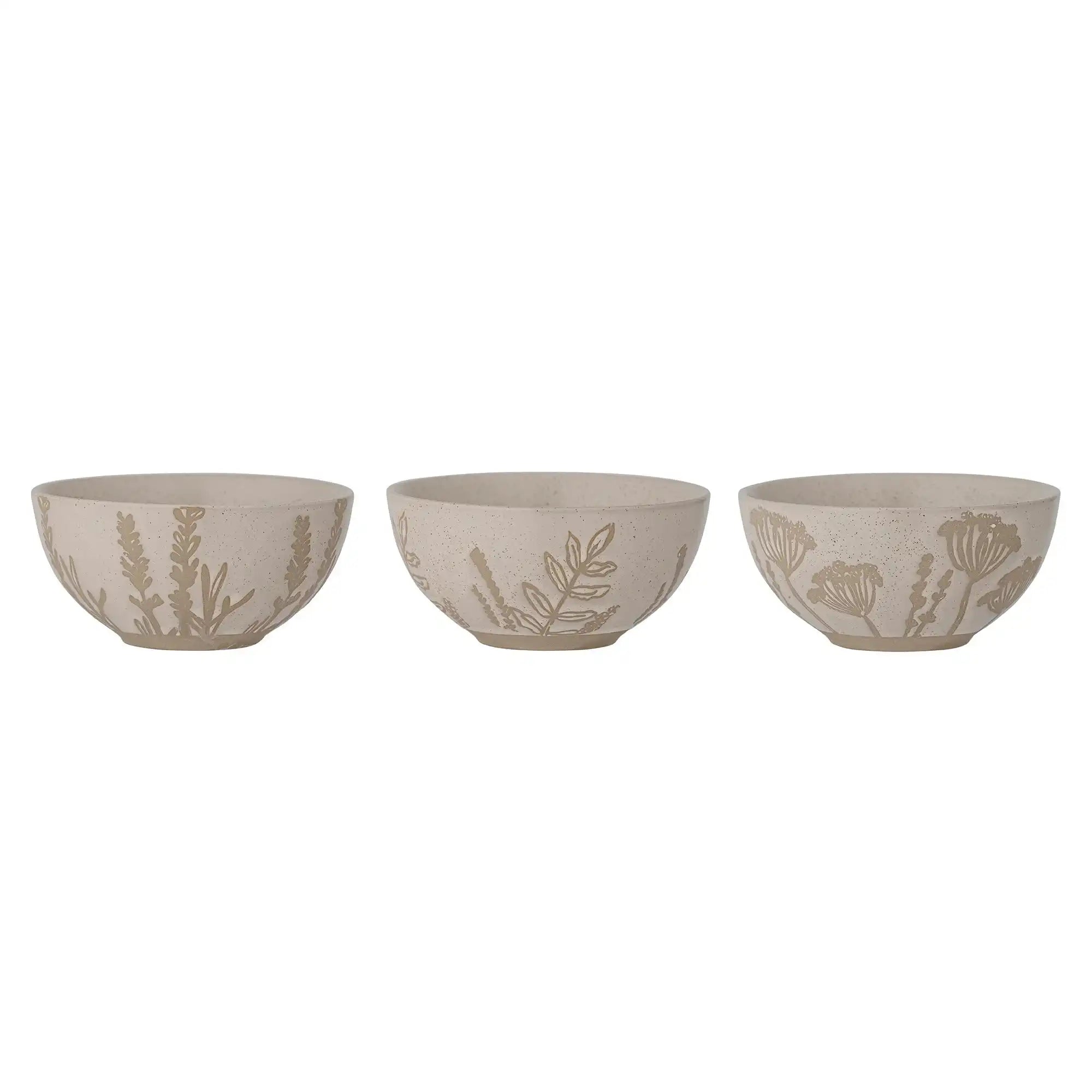 Waarom je de schalenset van Bloomingville wilt hebben: De Primrose schalenset brengt een verfijnde, vrolijke noot aan tafel. Je krijgt drie aardewerken schaaltjes met een delicaat bloemmotief dat net genoeg aandacht trekt zonder te overheersen. De zachte beige/naturel kleurtint geeft elke setting een rustgevende basis, van lazy breakfasts tot een casual borrel. Gebruik ze voor yoghurt, dips, olijven of kleine desserts; het subtiele design laat jouw gerecht de hoofdrol spelen en oogt toch bijzonder.