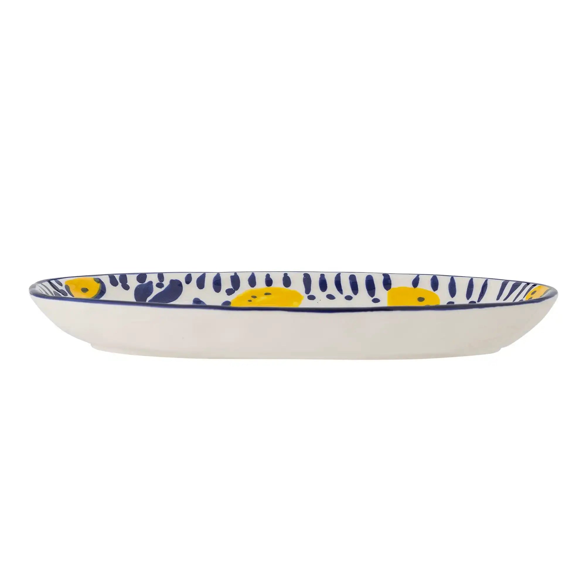 Waarom je de serveerschaal van Bloomingville wilt hebben: Breng zon op tafel met de Maxima serveerschaal. Het handgedecoreerde citroenmotief geeft je tafeldekking een frisse, kleurrijke twist, terwijl de blauwe basis voor rust en harmonie zorgt. Of je nu borrelhapjes neerzet of een smaakvol hoofdgerecht presenteert, deze schaal laat alles stralen. Perfect voor doordeweekse diners én feestelijke gelegenheden; hij tilt moeiteloos je setting naar een hoger niveau.