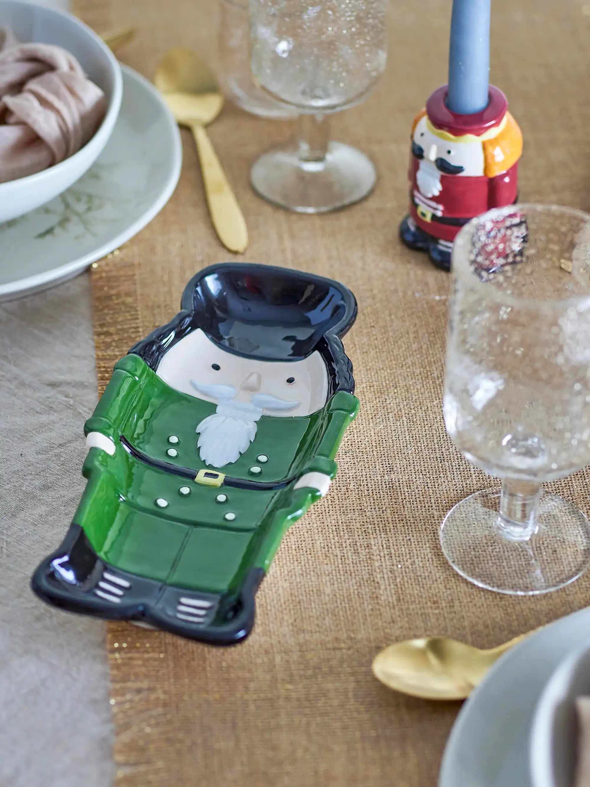 Unieke details & handwerk: Elke schaal is met de hand beschilderd, waardoor het rijke groene glazuur en de details zoals de glanzende knopen en karakteristieke hoed steeds net een beetje anders zijn. Het hoogwaardige aardewerk voelt solide aan en met een formaat van 27 x 13 cm is de schaal perfect voor het serveren van hapjes, koekjes of kleine lekkernijen. De moderne kleurencombinatie brengt een frisse twist aan klassiek kerstservies.