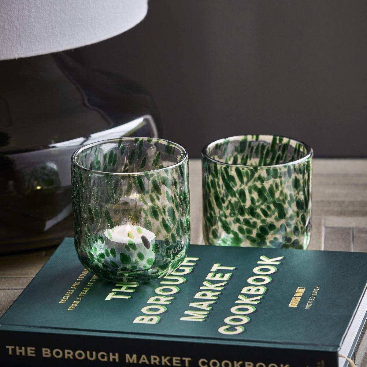 De House Doctor Sfeerlicht Home groen 9cm - 2 stuks brengt een speelse en frisse touch in elke kamer. Het handgemaakte ontwerp zorgt ervoor dat elk sfeerlicht uniek is, wat bijdraagt aan de exclusieve uitstraling van deze set. Het groene patroon op het transparante glas voegt niet alleen kleur toe, maar zorgt ook voor een prachtig schaduwspel wanneer het kaarslicht brandt. Deze sfeerlichten zijn ideaal om een warme, maar toch levendige sfeer te creëren in verschillende interieurstijlen, van modern tot bohemian.