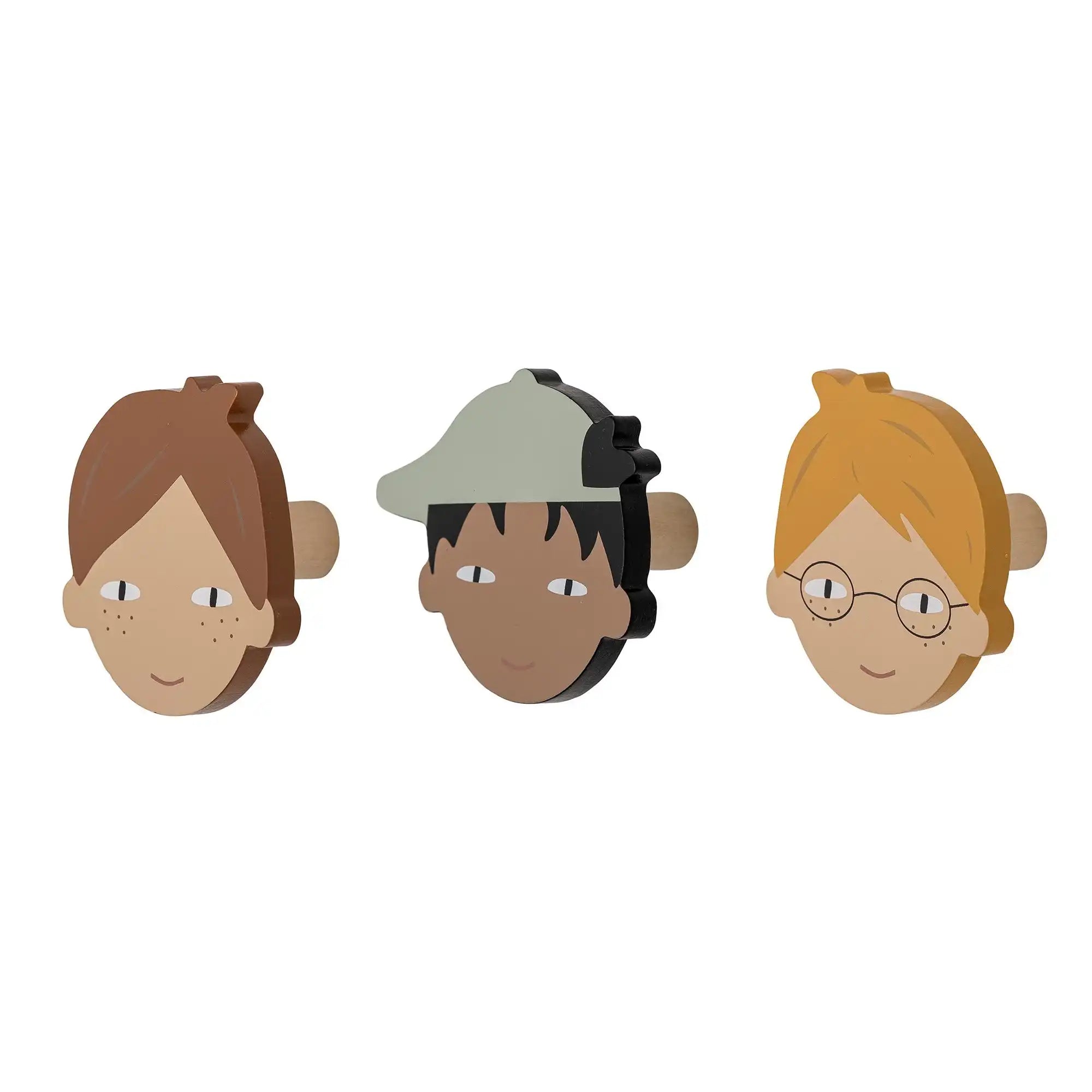 Waarom jij deze wandhaken van BLOOMINGVILLE MINI wilt: De Simson wandhaken van BLOOMINGVILLE MINI maken opruimen leuk! In deze set zitten drie grappige haken van hout, elk met een vrolijk geschilderd kopje. Hang er een jas, rugzak of verkleedkleding aan. Je kunt de haken gezellig samen ophangen of juist verspreid door de kamer. Door hun lieve uitstraling kun je ze ook gebruiken als handgreep op een ladekast of commode. Ze komen in een mooie cadeauverpakking — leuk om te geven of om zelf van te genieten.