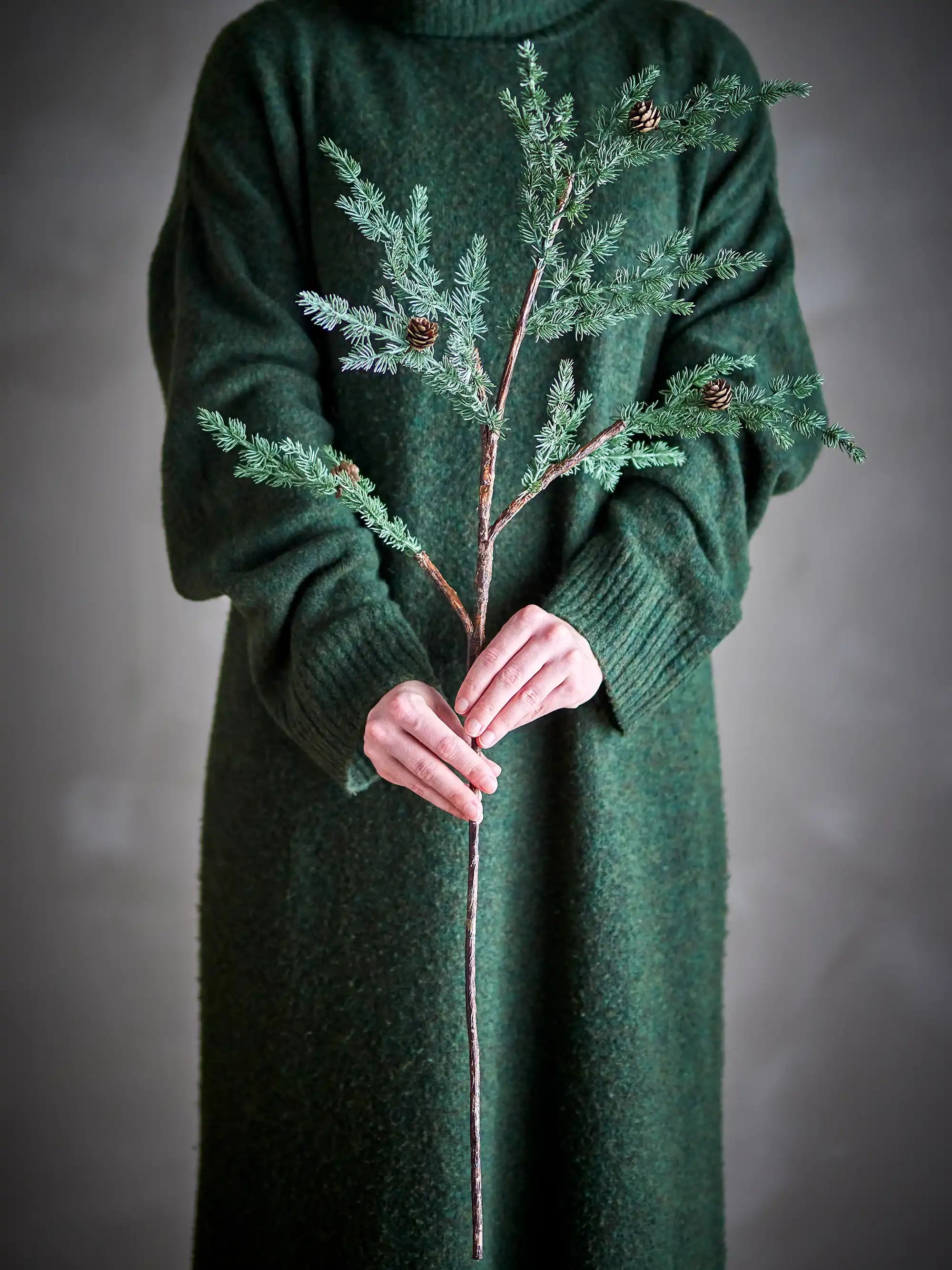 Details & materiaal: De tak is met veel aandacht gemaakt van kwalitatieve kunstbloemen, waardoor hij jaar na jaar mooi blijft. Met een lengte van 91 cm en een diameter van 20 cm past deze tak prachtig in een hoge vaas of als onderdeel van een stijlvol bloemstuk. De diepe groene tint en het fijne neppatroon zorgen voor realistische details, perfect passend binnen een Scandinavisch interieur.