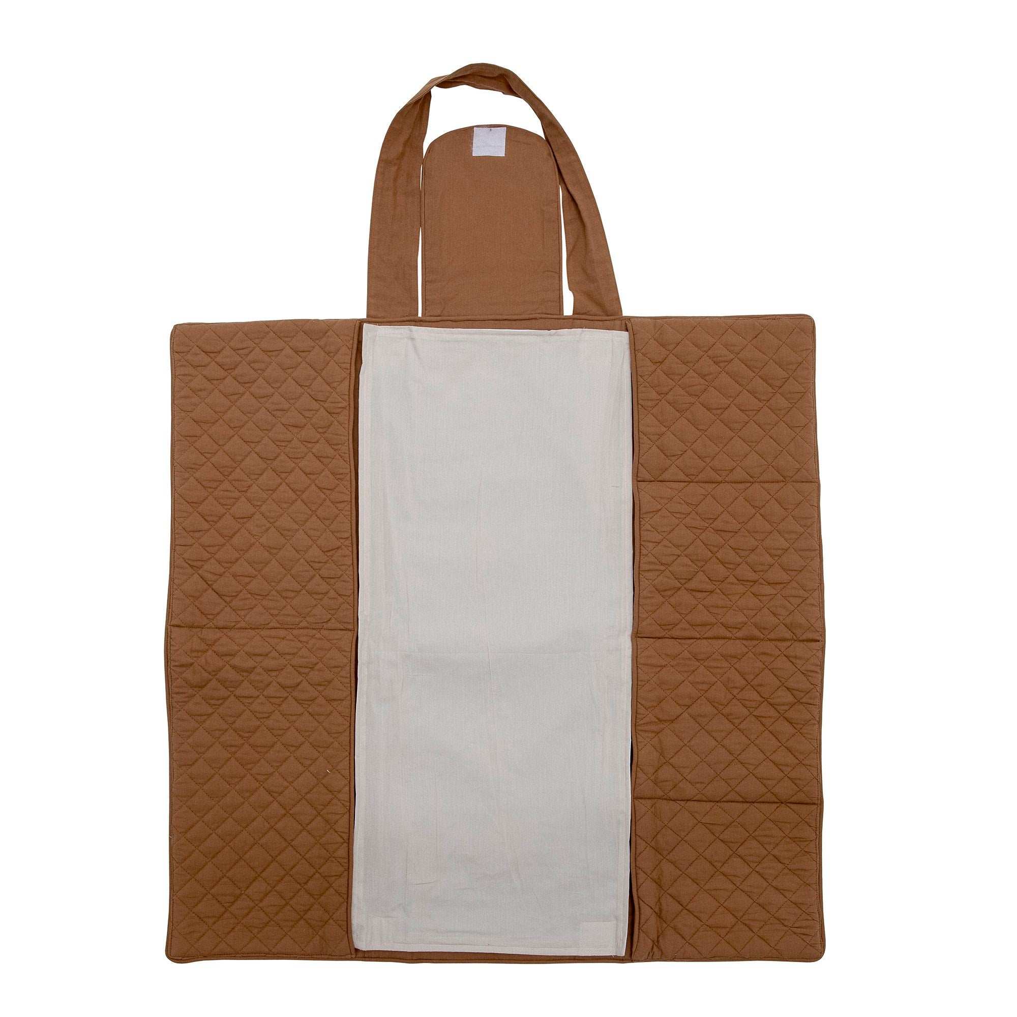 Details & materiaal: De Thanne is gemaakt van katoen in een warme bruine kleur. In het midden zit een zacht doek dat je eruit kunt halen en wassen, zodat alles fris blijft. Er zijn zes handige vakjes voor luiers, doekjes, crème en andere spulletjes. Zo hoef je nooit te zoeken. De toplaag stoot water af, dus schoonmaken gaat snel. Het slimme ontwerp van Bloomingville Mini is zacht én praktisch – fijn voor ouders die graag alles op orde hebben.