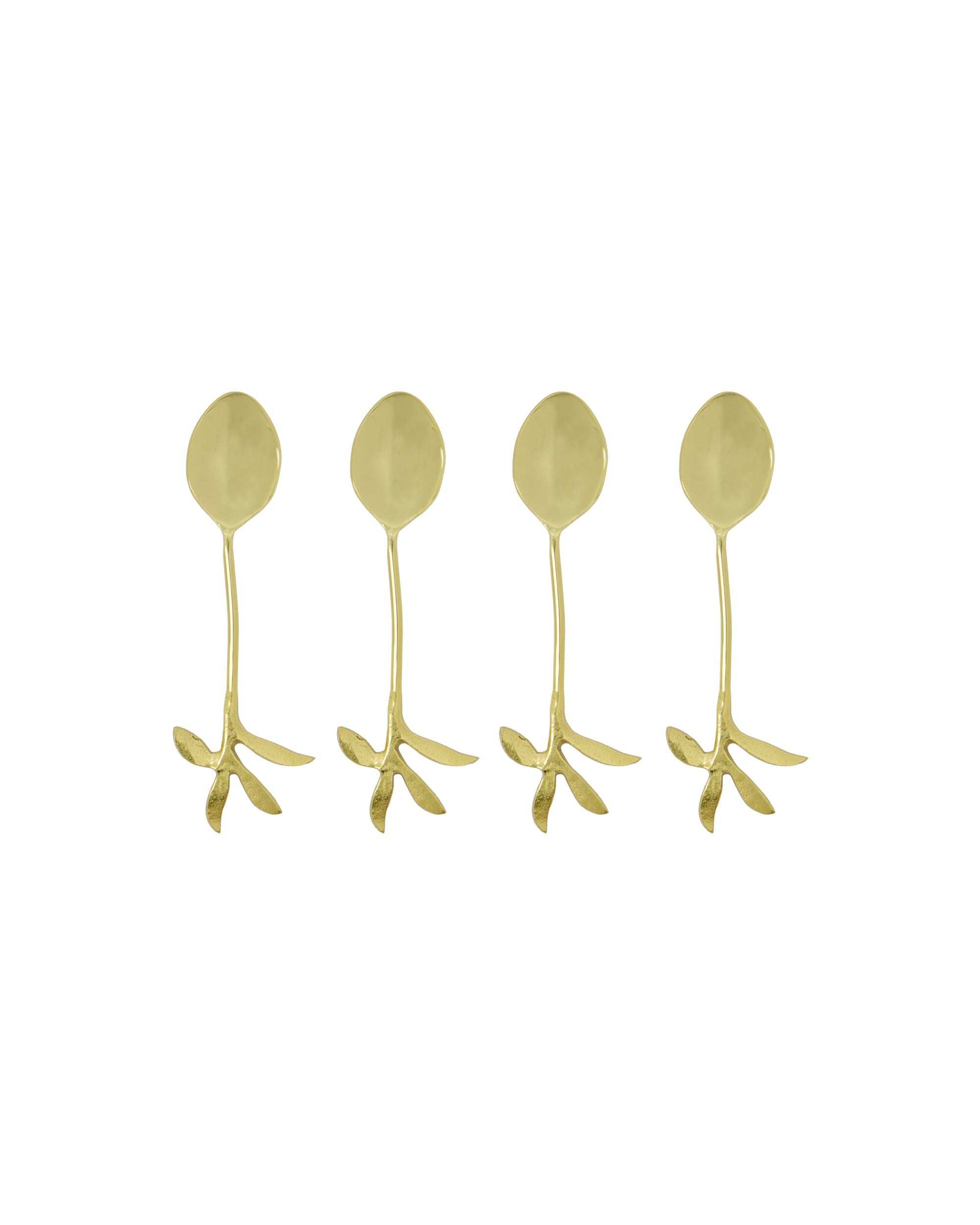 Voeg een vleugje luxe toe aan je serviescollectie met de theelepels Spoon goud van House Doctor. Deze set van vier is gemaakt van hoogwaardig roestvrij staal en afgewerkt met een warme, antiekgouden tint. De sierlijke takvorm met fijne bladaccenten maakt van elke lepel een klein kunstwerkje. Perfect voor thee, desserts of het serveren van kleine lekkernijen tijdens een high tea of diner.