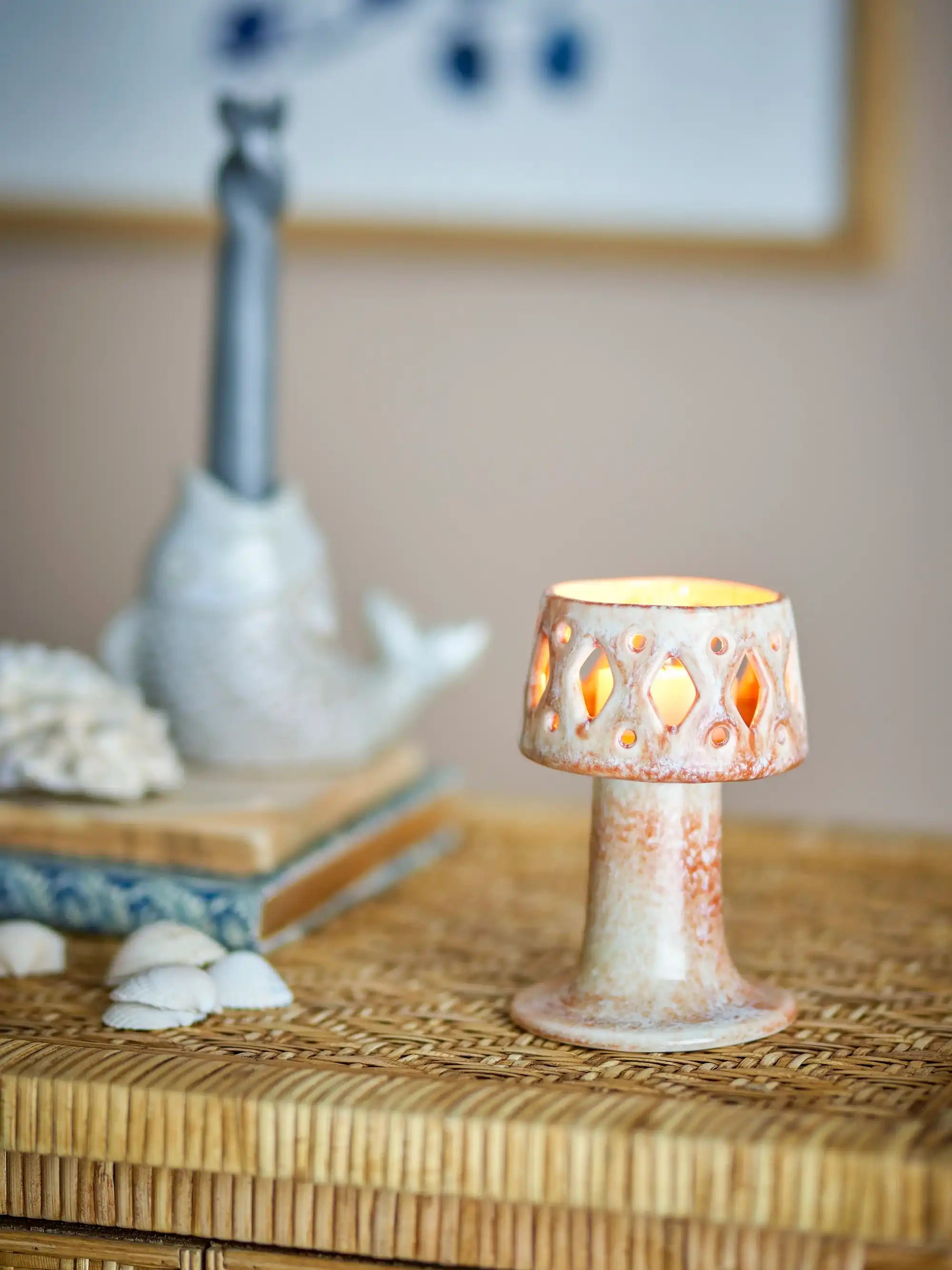 Gebruikstip: Plaats de Patty solo voor een rustige setting, of groepeer meerdere houders in verschillende hoogtes voor een gelaagd lichtspel. Combineer met natuurlijke materialen zoals linnen of hout om de beige/naturel tinten te versterken. Wissel af met andere texturen voor een rijk geheel en laat de unieke glazuurvariaties het werk doen—zo krijgt jouw styling moeiteloos karakter.