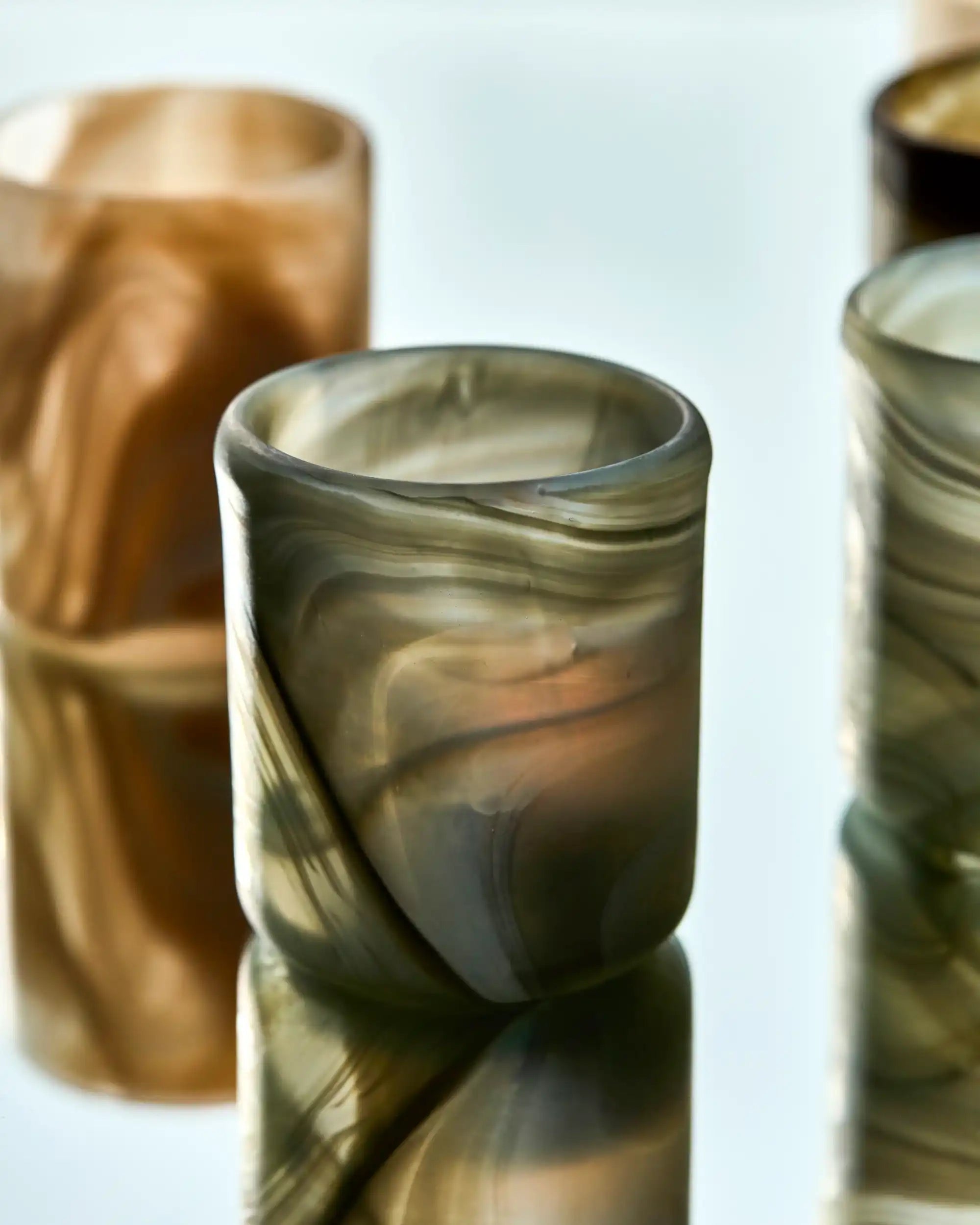 Breng een warme, stijlvolle sfeer in huis met deze set van twee Kae theelichthouders in chique grijs. Elke houder is ambachtelijk vervaardigd uit mondgeblazen glas en voorzien van een uniek gemarmerd patroon. De subtiele grijstinten passen moeiteloos in elk interieur en zorgen meteen voor een elegante uitstraling.