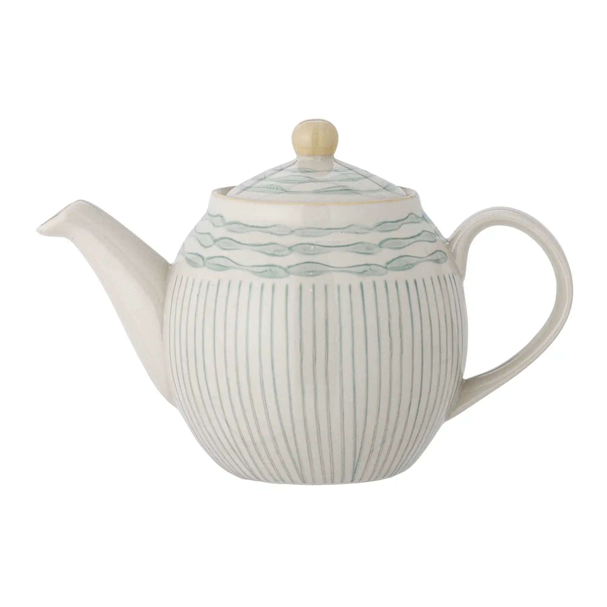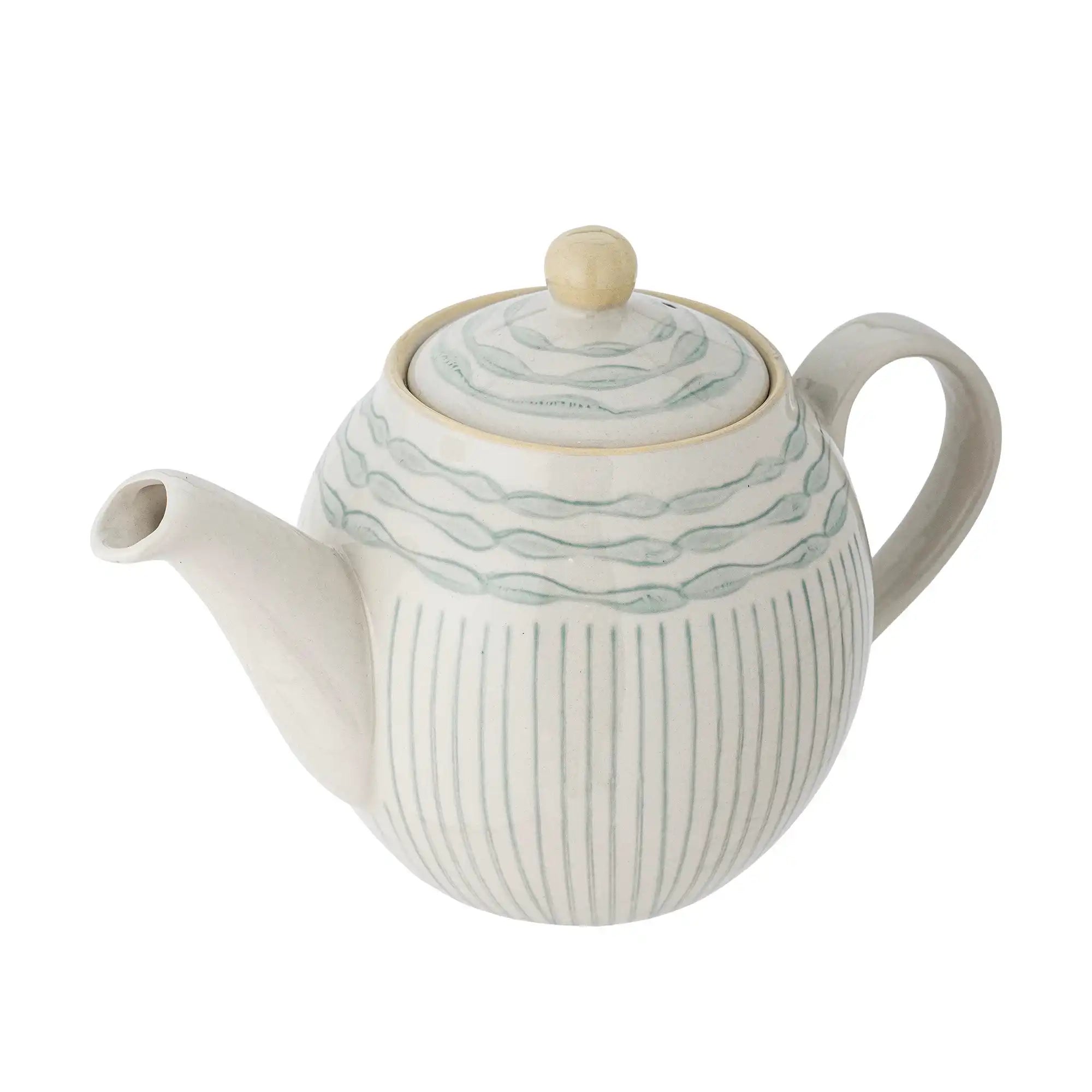 Waarom je de theepot van Bloomingville wilt hebben: De Maple theepot uit de Creative Collection brengt direct sfeer aan tafel. De combinatie van groen glazuur met een verfijnd blauw patroon geeft je theemoment net dat beetje extra en nodigt uit om te mixen en matchen met ander servies. Of je nu een rustig ontbijt dekt of vrienden ontvangt, deze theepot maakt jouw setting persoonlijk en huiselijk.
