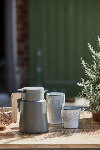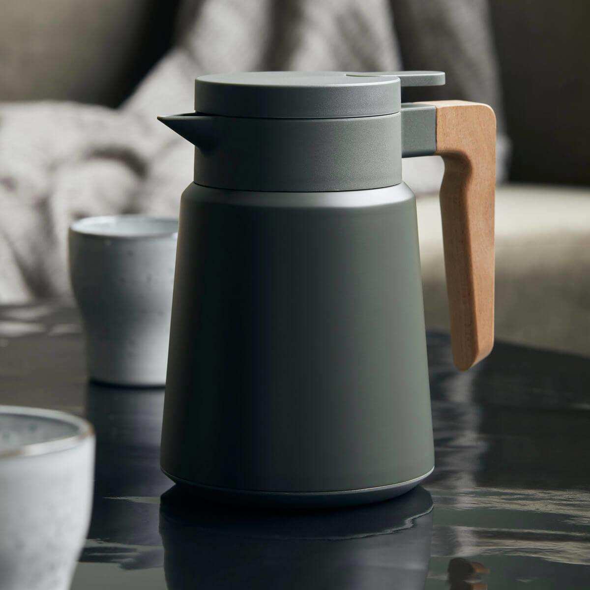 Serveer je koffie of thee in de groene Cole koffiekan van House Doctor. Met een inhoud van één liter is hij ideaal voor koffie in de ochtend of een middagpauze met vrienden of collega’s. En eigenlijk voor elke andere gelegenheid. Het roestvrij staal met matgroene tint gaat prachtig samen met het handvat van beukenhout en geeft de kan een tijdloze en informele uitstraling. Cole past in werkelijk elke setting – ook wanneer je alleen jezelf wilt trakteren op een welverdiende koffiepauze.