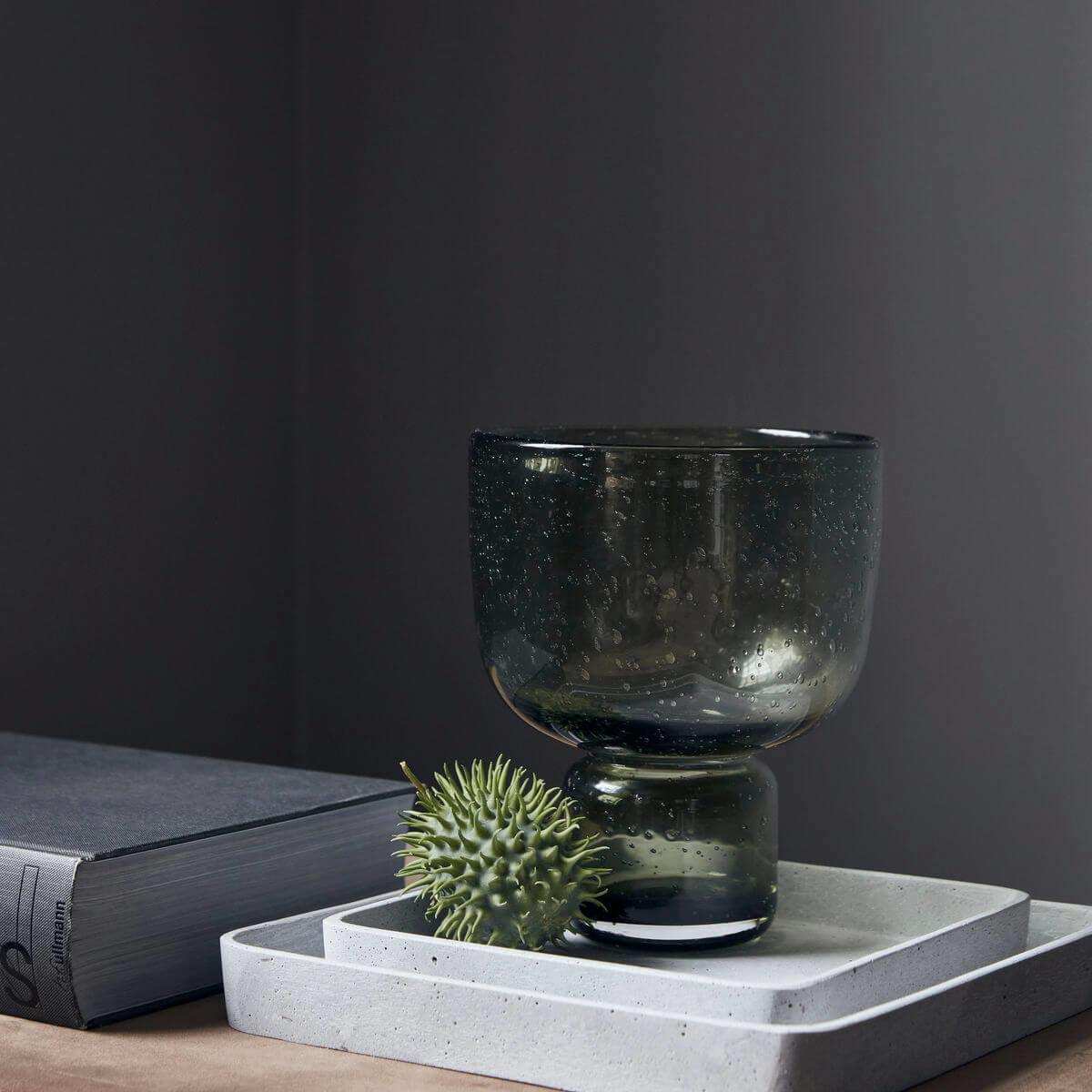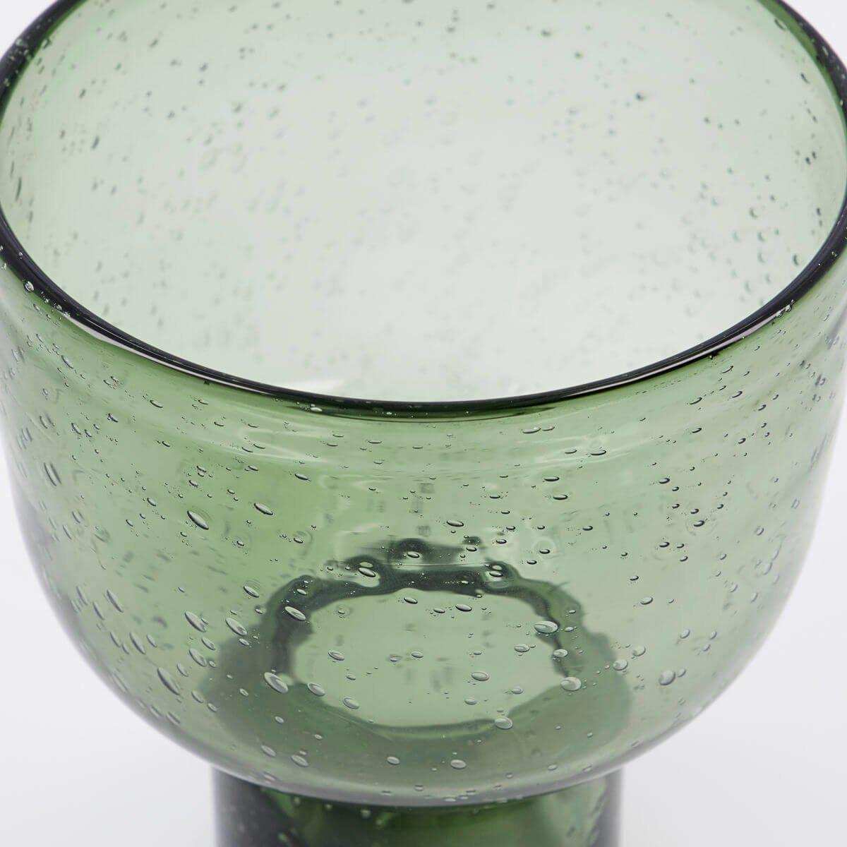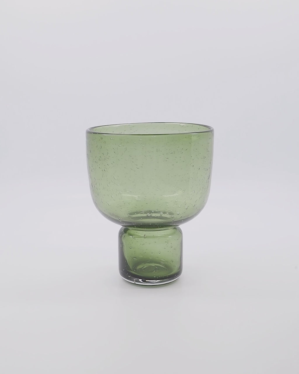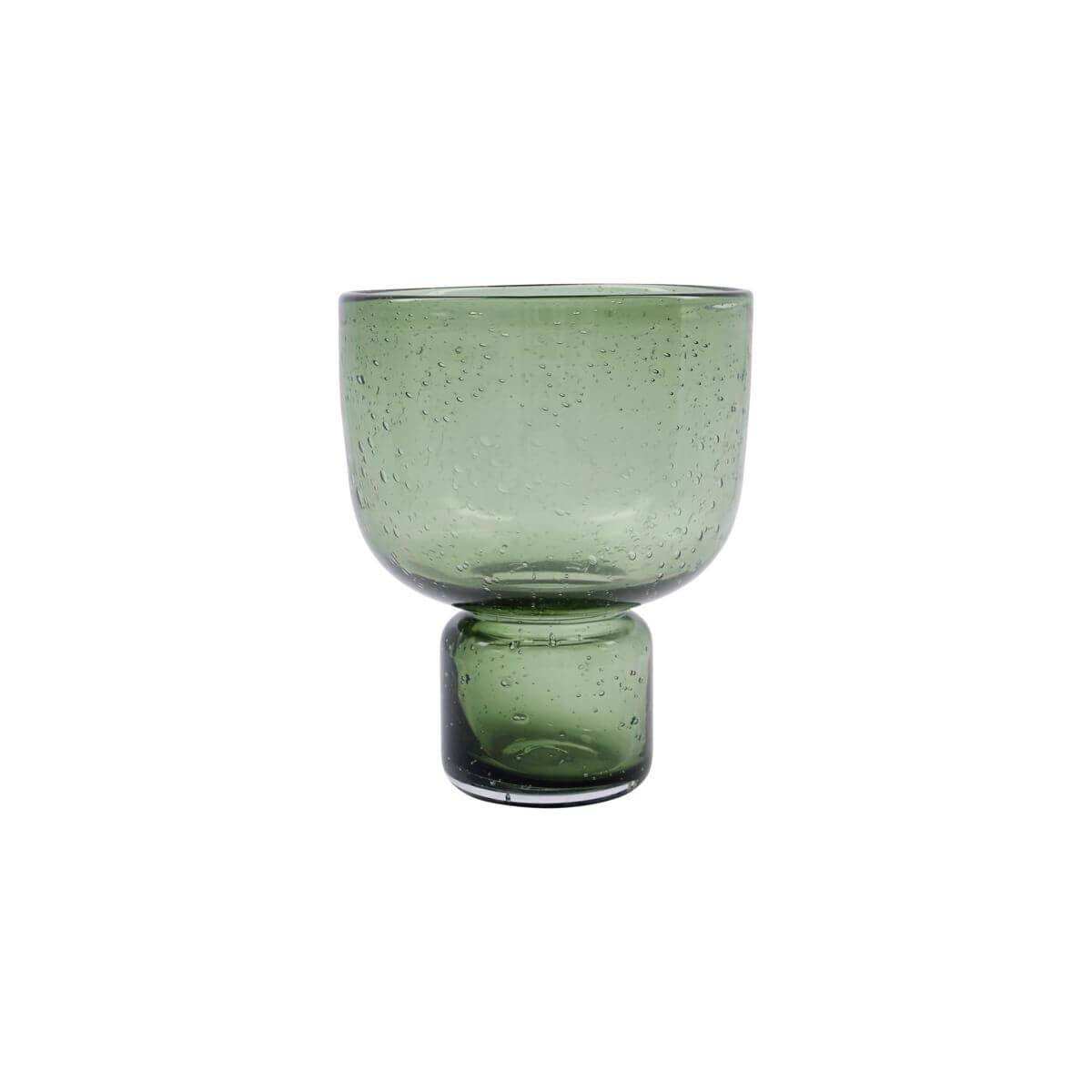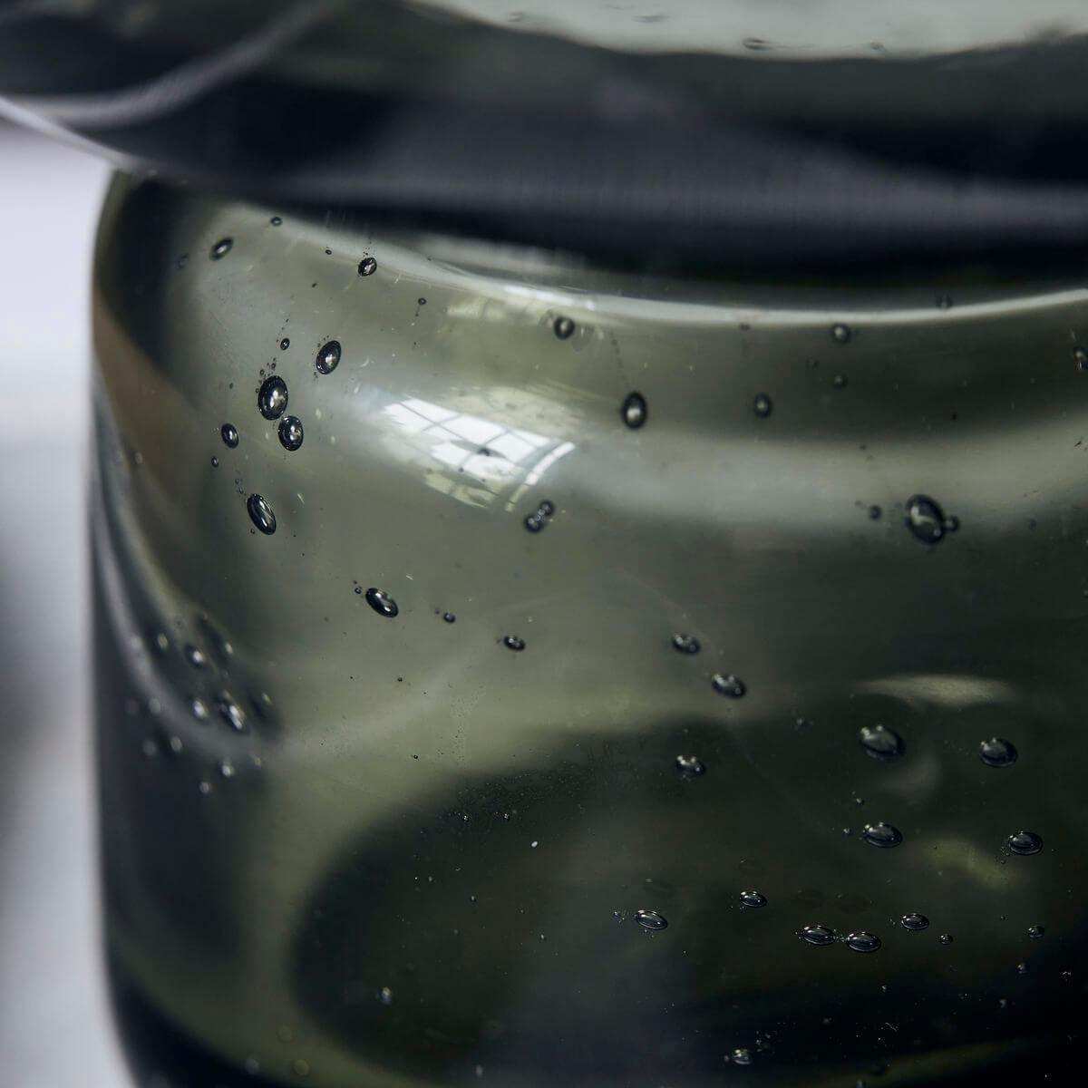 - Gebruik als eyecatcher op een dressoir: Plaats de vaas solo op een dressoir of bijzettafel en laat de olijfgroene tint en de luchtbelletjes in het glas opvallen in het zonlicht.