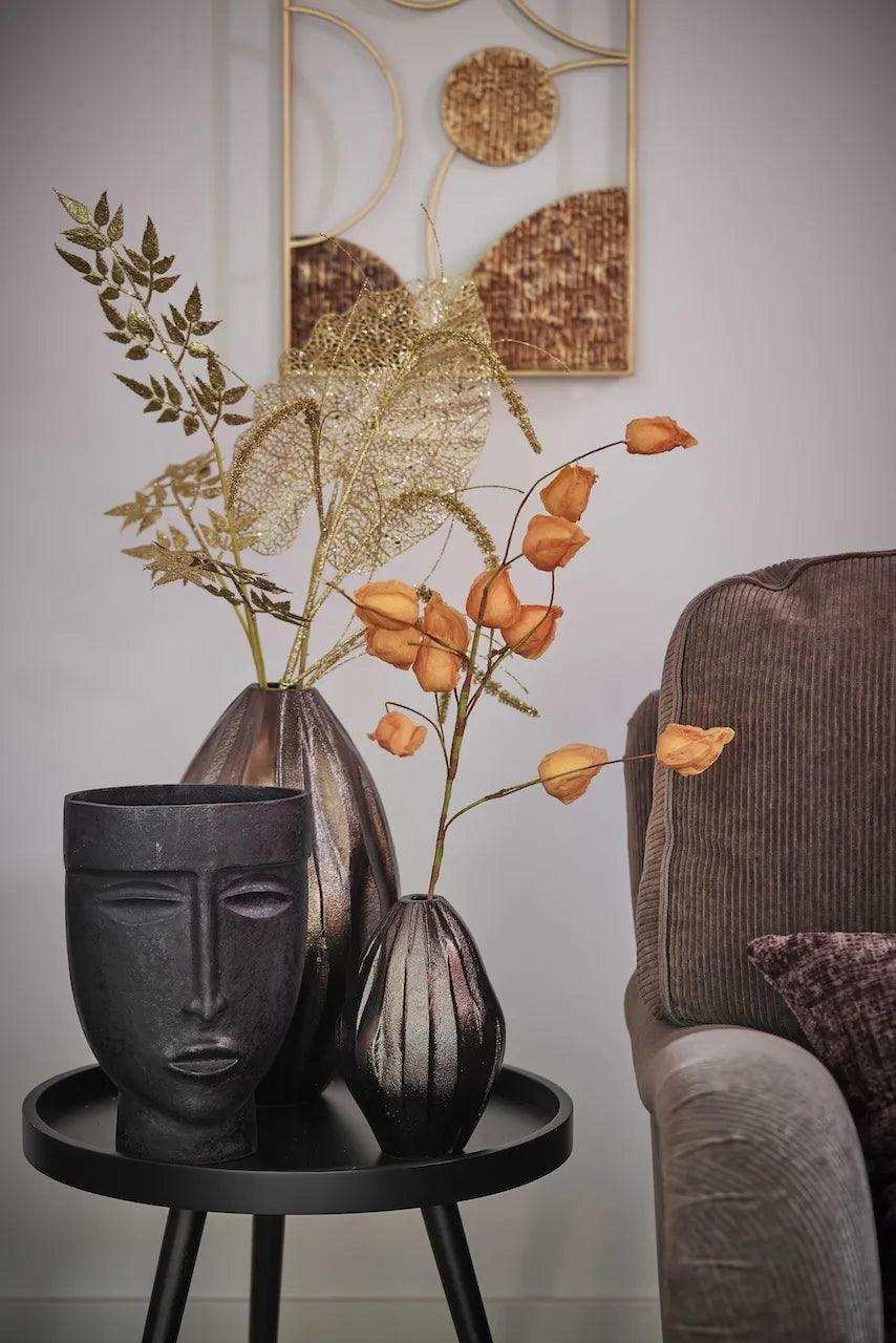 Deze vaas is zorgvuldig gemaakt van premium metaal en schittert in een kenmerkende zwarte tint, die een eigentijdse, gestroomlijnde uitstraling aan je interieur geeft. Deze kleur is niet alleen stijlvol, maar voegt ook een gevoel van moderniteit en klasse toe aan elke ruimte.