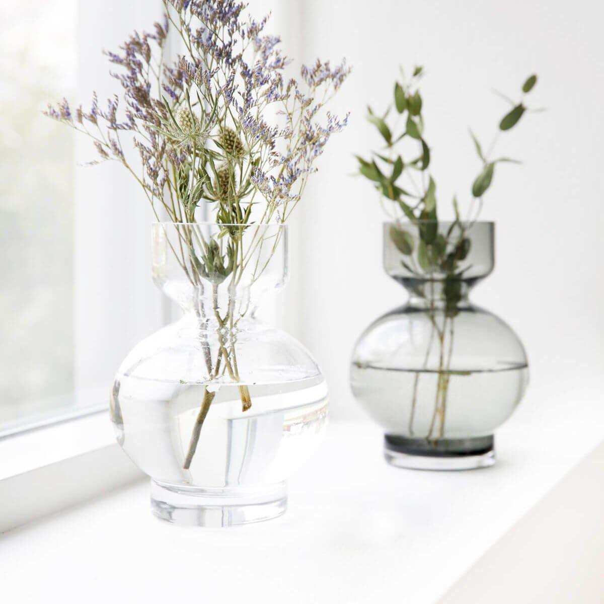 Met zijn lichte en elegante uitstraling brengt de Lowa vaas een rustgevende en warme sfeer in je huis. Plaats hem op een prominente plek en laat hem stralen met een boeket van de mooiste bloemen of twijgen die je kunt vinden in je tuin of buitenomgeving. De combinatie van de heldere glazen vaas en de natuurlijke elementen creëert een prachtig contrast en voegt een vleugje frisheid toe aan je interieur.