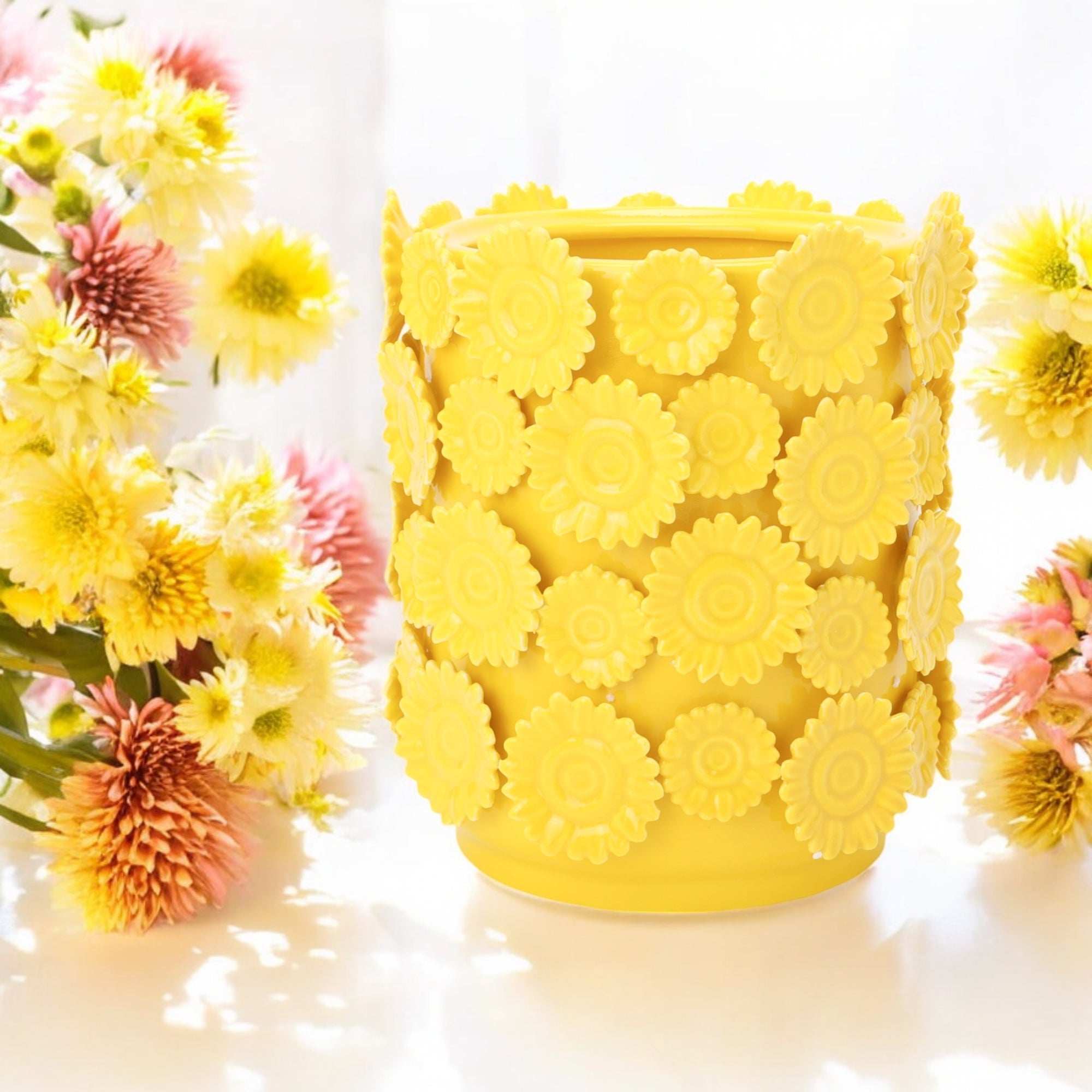 Of het nou regent of de zon schijnt, met de ‘Sunny Side Up’ vaas van House of Nature haal je elke dag een vrolijk zomergevoel in huis. Deze zonnige vaas is gemaakt van stevig aardewerk en volledig bekleed met 3D-zonnebloemen in verschillende formaten. De bloemen lijken stuk voor stuk met de hand te zijn opgeplakt, wat zorgt voor een speelse, ambachtelijke look.