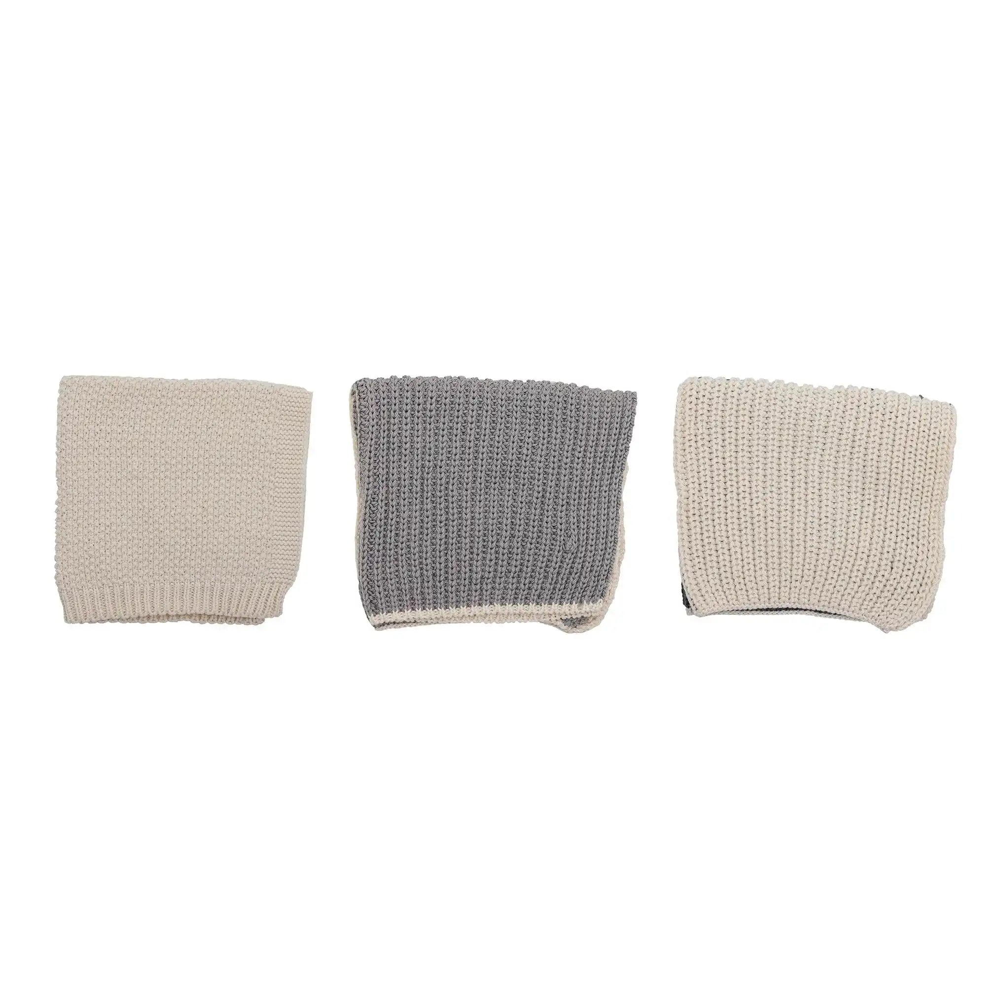 Details & materiaal: De Odette set bestaat uit drie vaatdoekjes van katoen in grijs, uitgevoerd met een fijn gebreid motief dat karakter en textuur geeft. Het materiaal voelt prettig in de hand en de afwerking oogt kwalitatief, waardoor je ze net zo graag laat liggen als dat je ermee werkt. Dankzij de ingetogen kleurstelling kun je de doeken onderling mixen en matchen, of combineren met andere doeken voor een persoonlijke, doordachte styling van je keuken. Perfect voor dagelijks gebruik in de keuken.