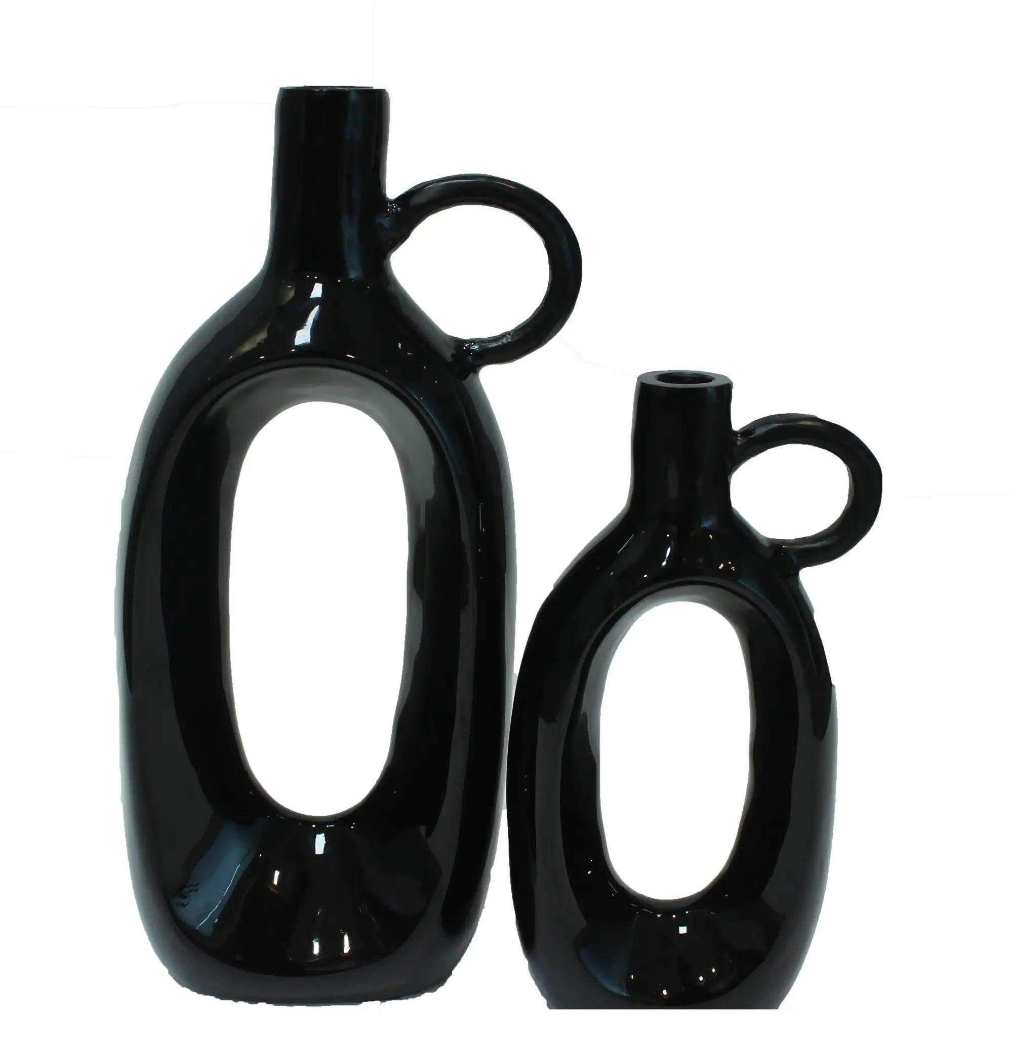 Elke vaas is met zorg en precisie met de hand vervaardigd, waardoor elk stuk zijn eigen unieke karakter heeft. De glanzende laklaag niet alleen versterkt de diepe zwarte kleur, maar geeft de vazen ook een verfijnde afwerking die elke ruimte kan opfleuren.