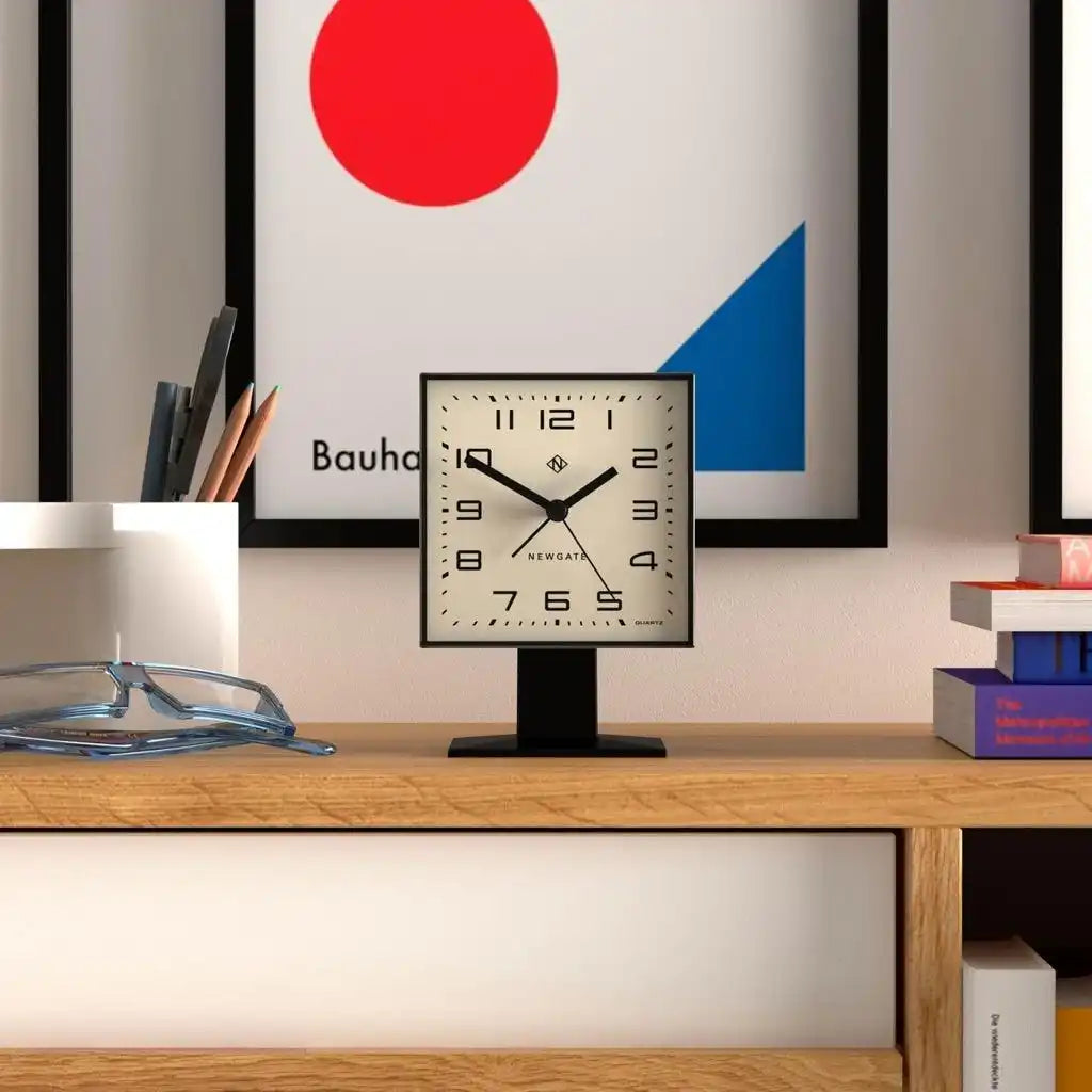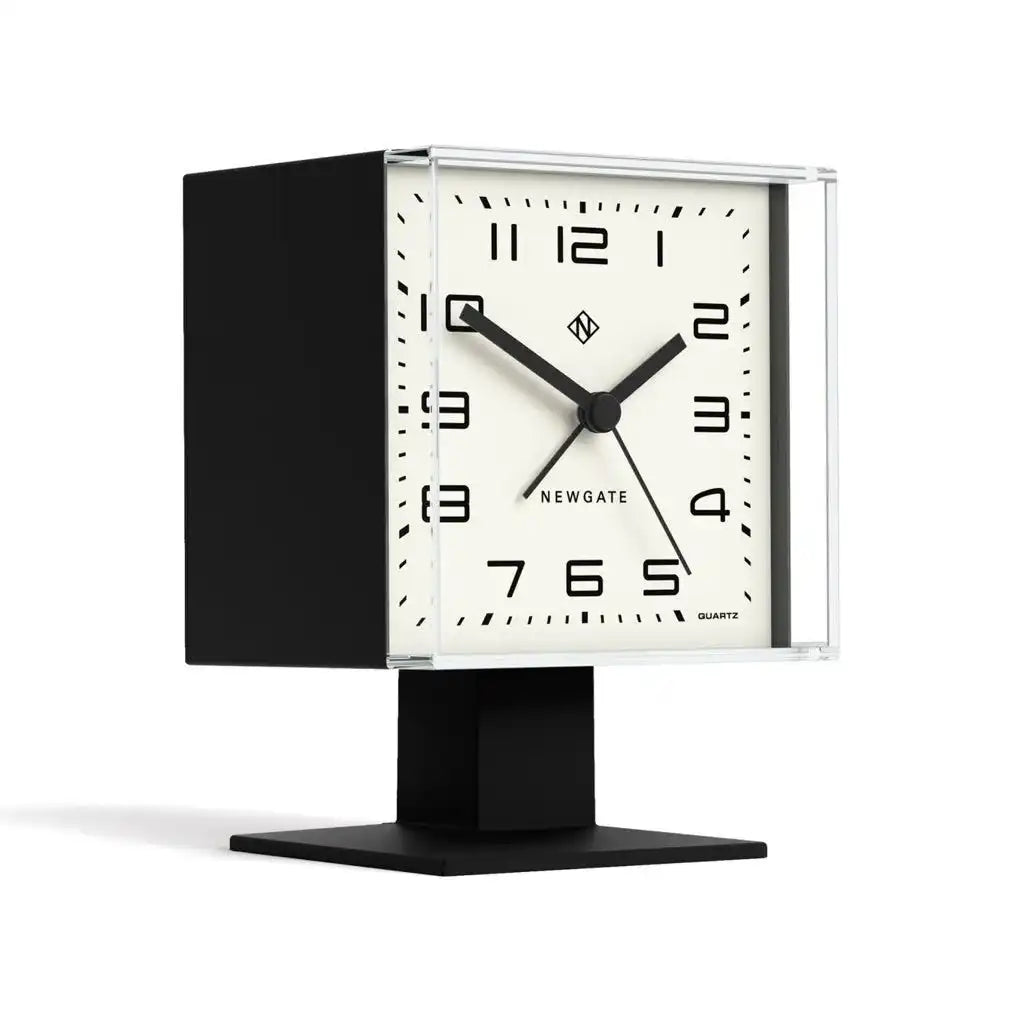 Voeg een tijdloos design toe aan je interieur met de Newgate Victor tafelklok / wekker in klassiek zwart. Deze moderne wekker met zijn Arabische wijzerplaat en prominente acryllens brengt een subtiele knipoog naar het verleden terwijl het moeiteloos aansluit bij een hedendaagse stijl. De vierkante kast met een chique matte afwerking staat op een bijpassend voetstuk, wat de door Newgate ontworpen klok tot een opvallend stuk maakt voor elk bureau, schap of nachtkastje.