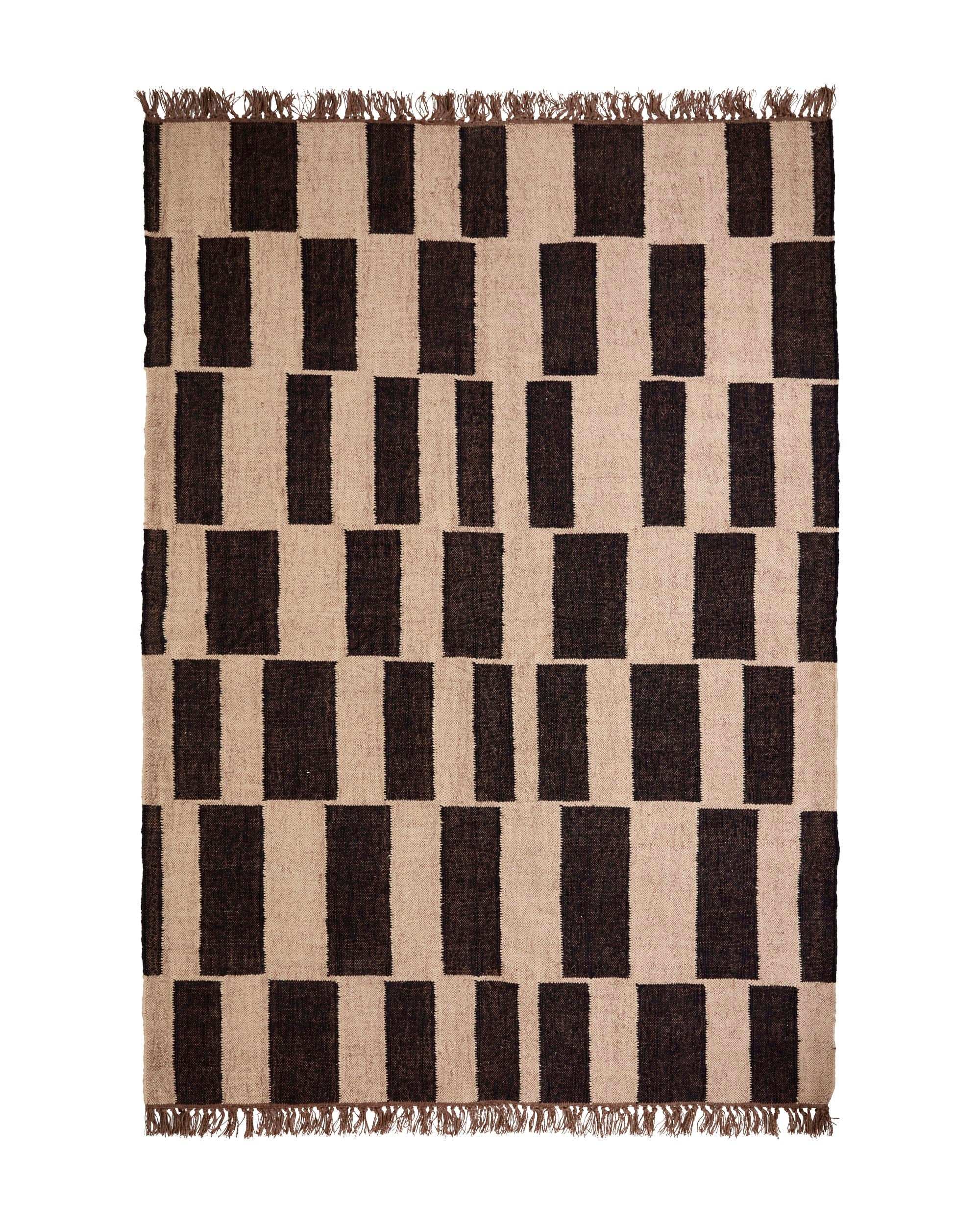 Deze sfeermaker is gemaakt van een uitgebalanceerde mix van jute en wol — stevig en natuurlijk, maar met voldoende zachtheid. Het grafische patroon, ingetogen maar doordacht geweven, creëert diepte zonder druk te worden. Ideaal om rust te brengen in een dynamisch interieur of juist textuur toe te voegen aan een minimalistische setting.