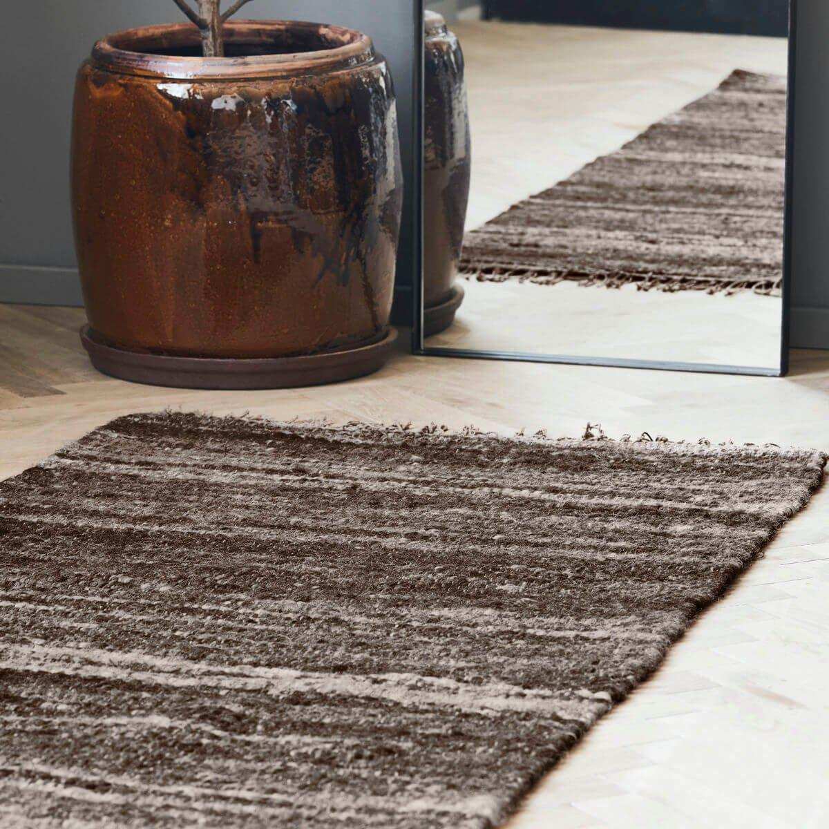 Vernieuw je interieur met dit mooie vloerkleed dat een effect op de hele ambiance heeft. Hafi van House Doctor is een lang vloerkleed dat met de hand is geweven van een duurzame mix van jute, katoen en wol in verschillende tinten bruin. Het is een tijdloos en klassiek vloerkleed dat is afgewerkt met franjes om het een ontspannen en informele uitstraling te geven. Laat het je gasten begroeten en de vloer in de hal beschermen of plaats het naast je bed als zachte ondergrond voor je voeten in de morgen. Elke ruimte profiteert van de zachte textuur en balans die een vloerkleed kan geven. Omdat het kleed met de hand is geweven, kunnen de afwerking en kleur variëren.