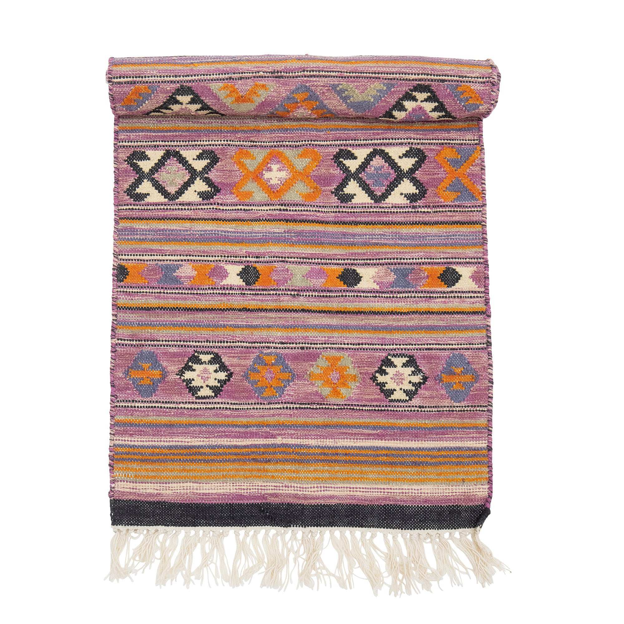 Waarom je dit wilt hebben: Het Yolanda vloerkleed van Bloomingville brengt direct warmte en een persoonlijke uitstraling in huis. De levendige paarse tinten en het grafisch geweven patroon zorgen voor een uitnodigende sfeer en maken van iedere kamer een uniek geheel.
