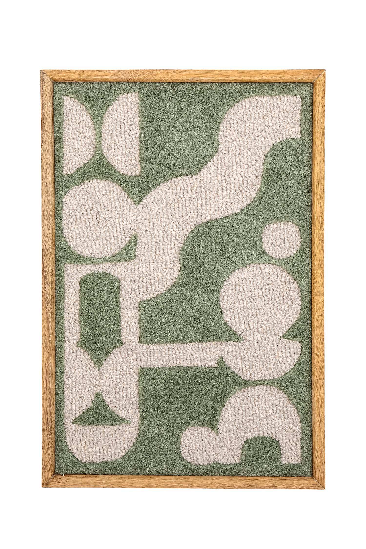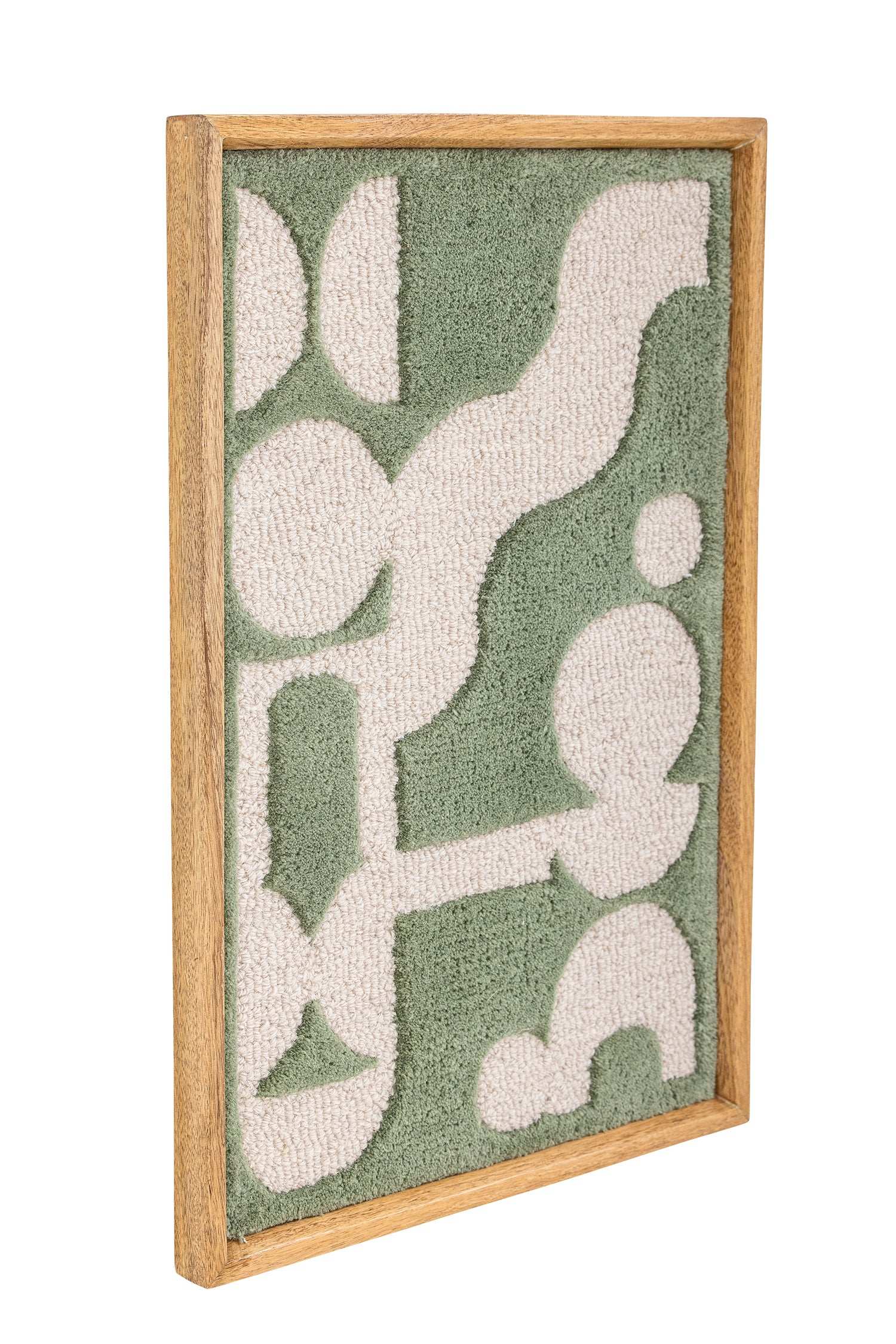 Details & materiaal: Deze unieke decoratie bestaat uit prachtig getuft wol in een elegant groene kleur, subtiel omlijst door een houten frame voor een natuurlijke uitstraling. Met zijn royale formaat van 45 x 65 cm wordt jouw muur een echte blikvanger, terwijl het tijdloze ontwerp zich moeiteloos in verschillende interieurs laat inpassen.