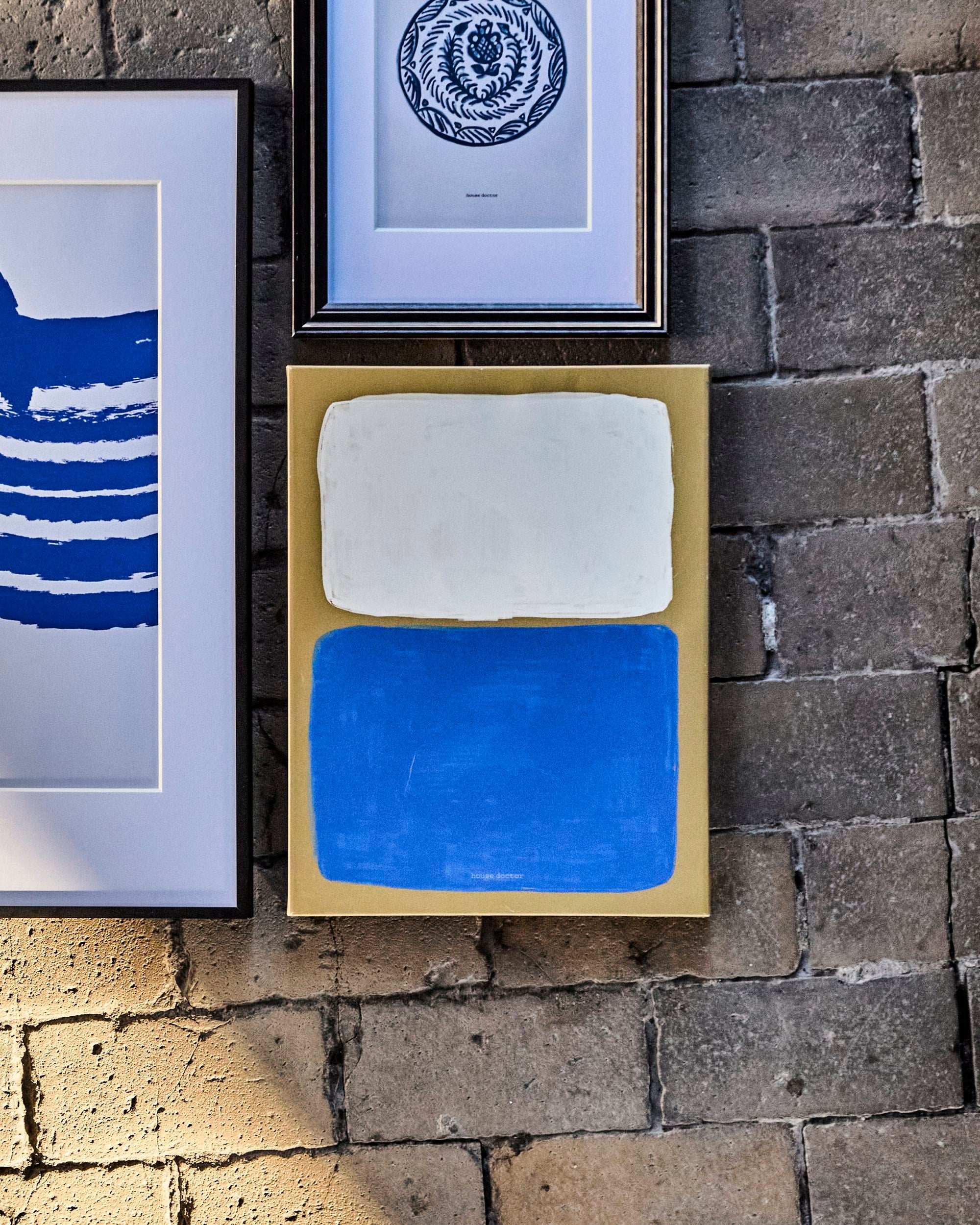 Reca van House Doctor voegt levendigheid toe aan je muur zonder te schreeuwen. De heldere compositie van diepe blauwtinten, mosterdgeel en zacht gebroken wit voelt energiek én harmonieus aan. Dankzij het compacte formaat van 30 x 40 cm is dit kunstwerk zowel subtiel als expressief — perfect voor een kleinere wand of als kleuraccent tussen andere decoratie.