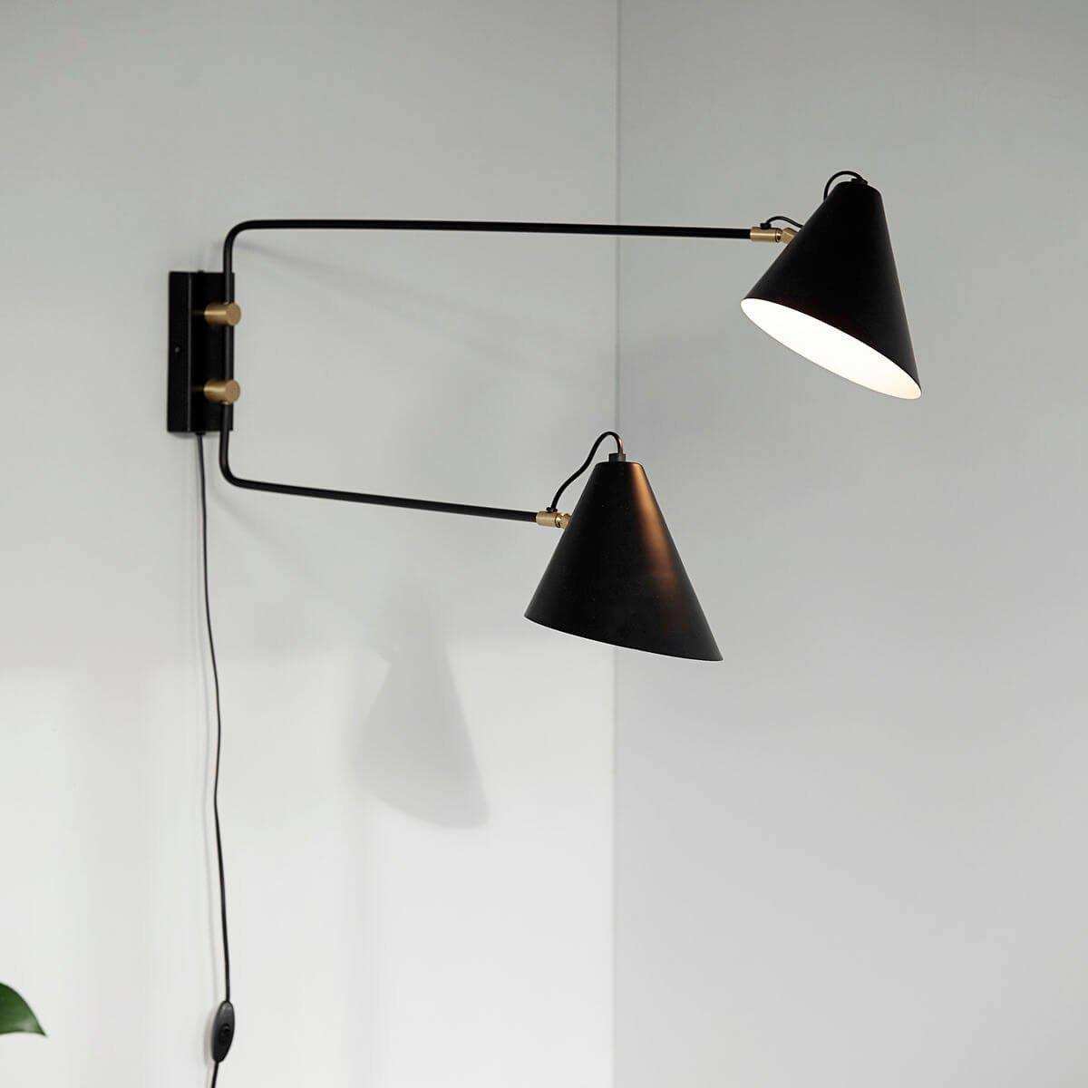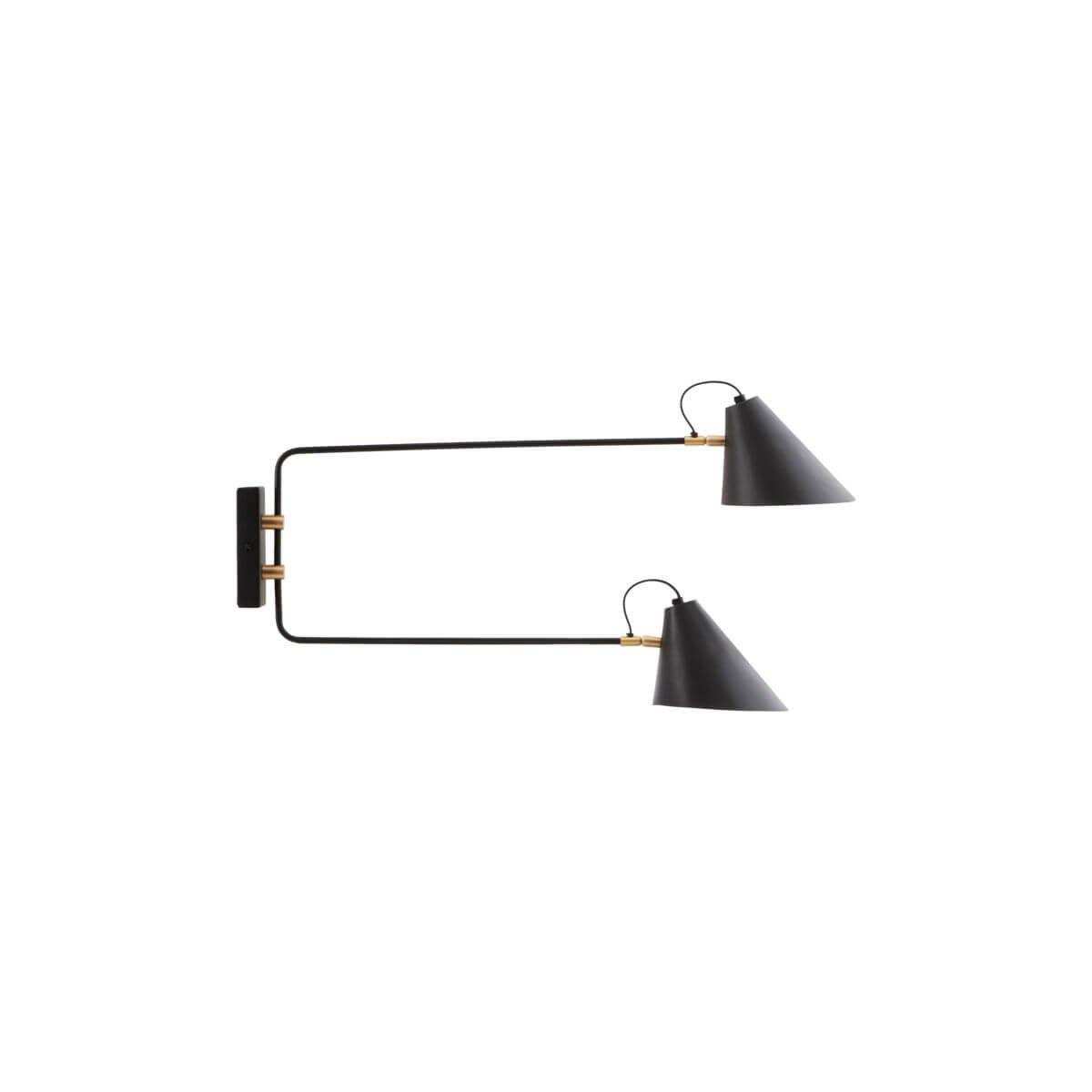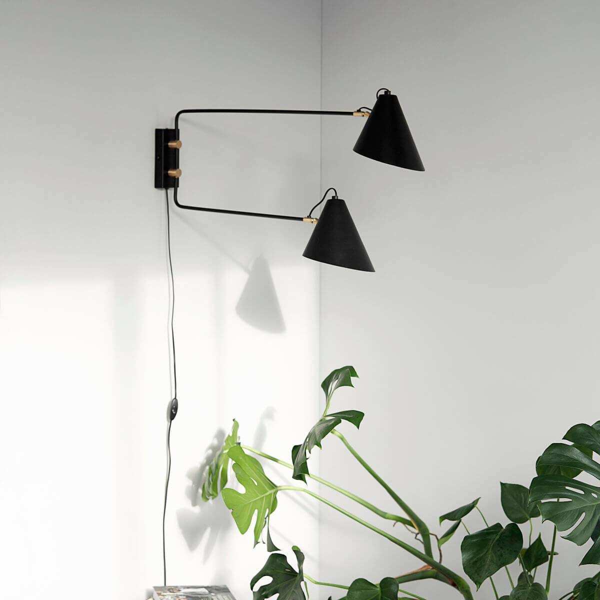 Lampen geven verlichting in de duisternis en voegen warmte en stijl toe aan je huis. Met de decoratieve wandlamp Club Double van House Doctor haal je sfeerlicht in huis en een prachtige decoratie voor aan de muur. De lamp is eigenlijk twee lampen in één. Het industriële ontwerp geeft het een bijna sculpturale expressie. De combinatie van zwart ijzer en messing geeft het ontwerp een mooie, warme touch. De lamp is door door zijn ontwerp op veel manieren en in veel kamers toepasbaar. De armen kunnen van links naar rechts worden versteld, waardoor je de mogelijkheid hebt om het licht af te stellen zoals jij dat wilt.