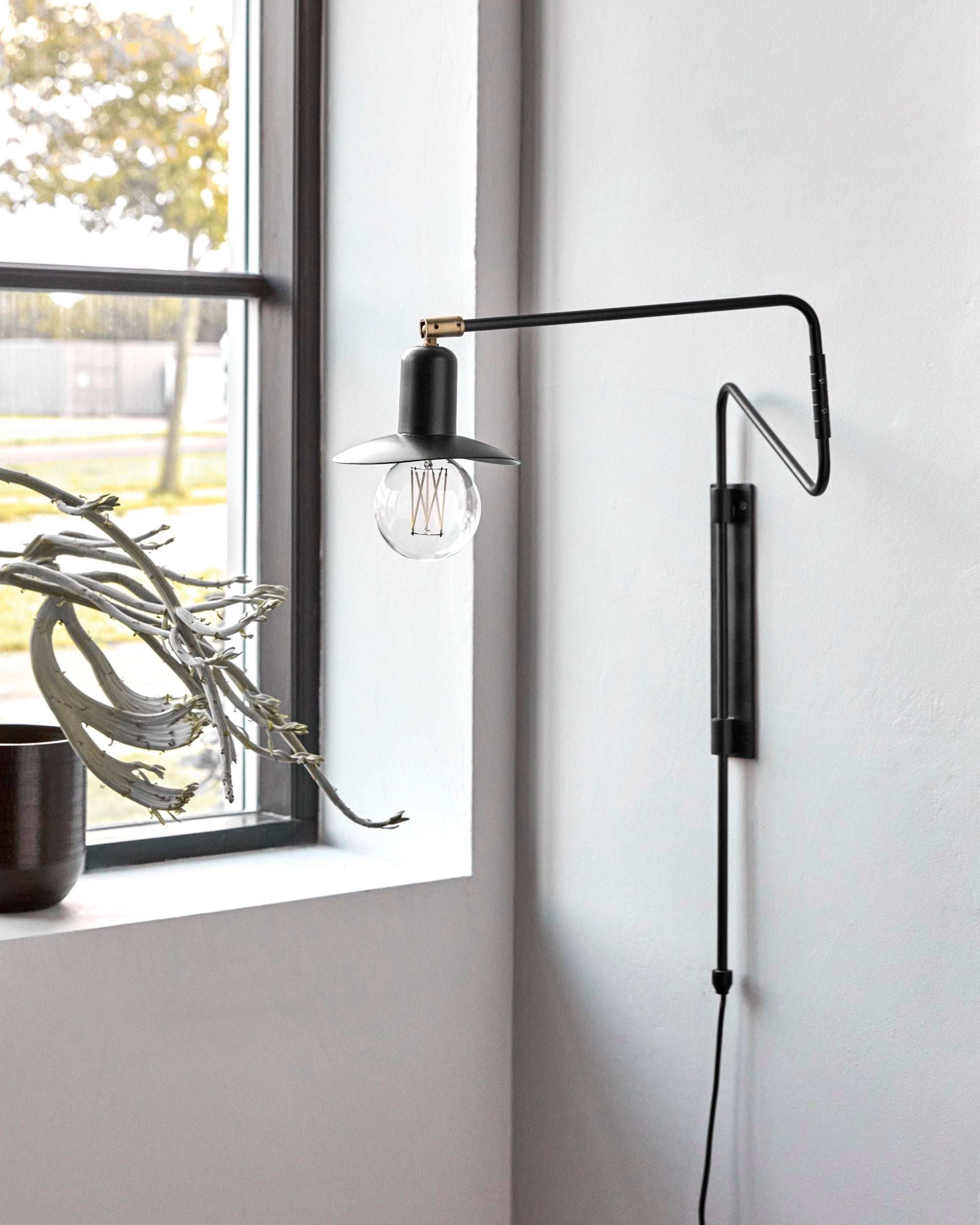 De Swing wandlamp van House Doctor is het toonbeeld van stijlvol minimalisme. Met zijn matzwarte afwerking, messing detail en industriële vormgeving is deze wandlamp niet alleen functioneel, maar ook een sterk stijlelement aan je muur. De verstelbare arm van 63 cm maakt het mogelijk het licht precies te richten waar je het nodig hebt – ideaal als leeslamp naast je bed of als sfeerverlichting boven een dressoir.