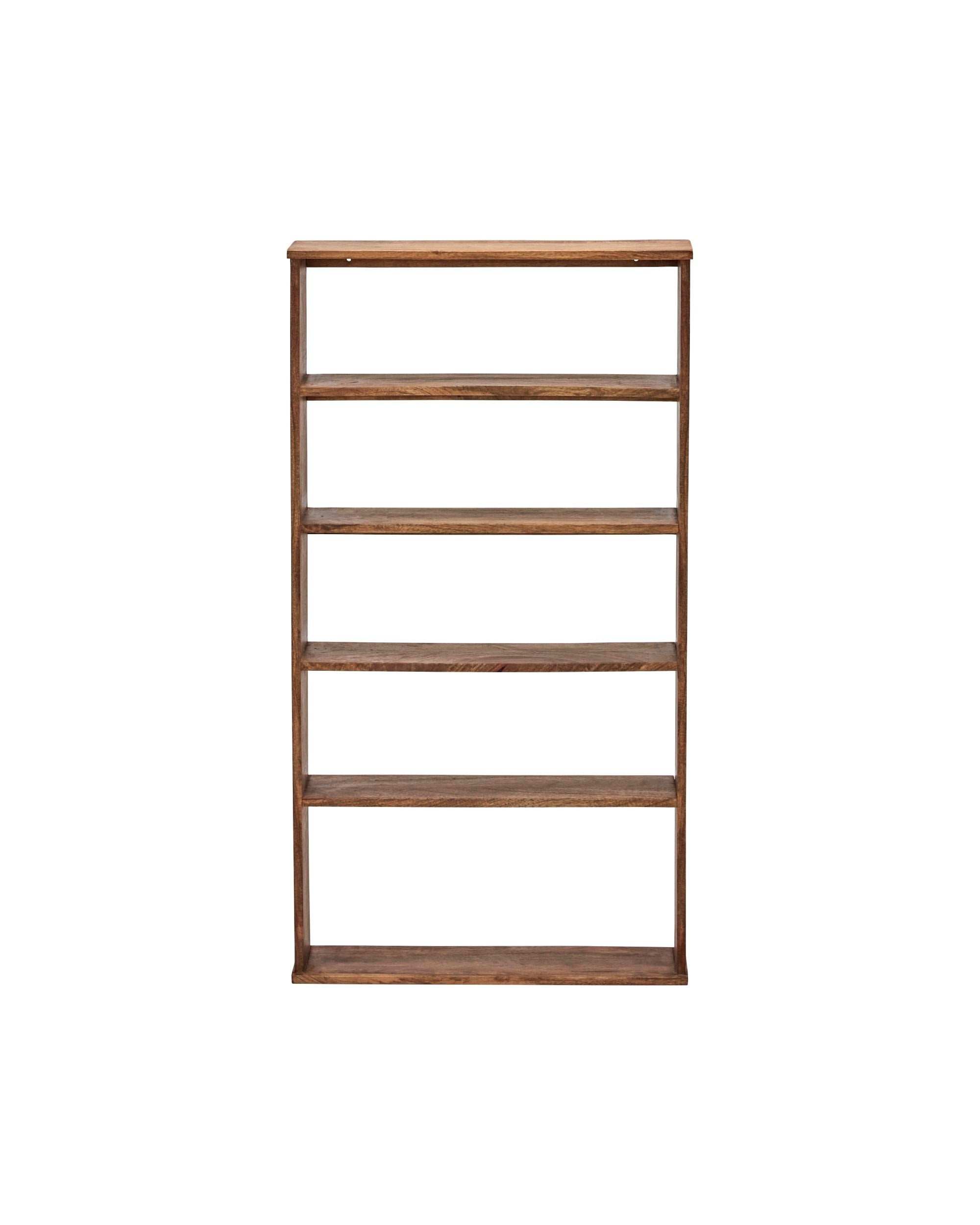 De vijf vaste planken bieden volop ruimte voor je favoriete woonaccessoires, servies of boeken. Dankzij de gegroefde zijpanelen krijgt dit wandrek een subtiele, verfijnde uitstraling die tijdloos en toch uniek is. Of je nu gaat voor een landelijk, industrieel of Scandinavisch interieur, dit rek voelt zich overal thuis.