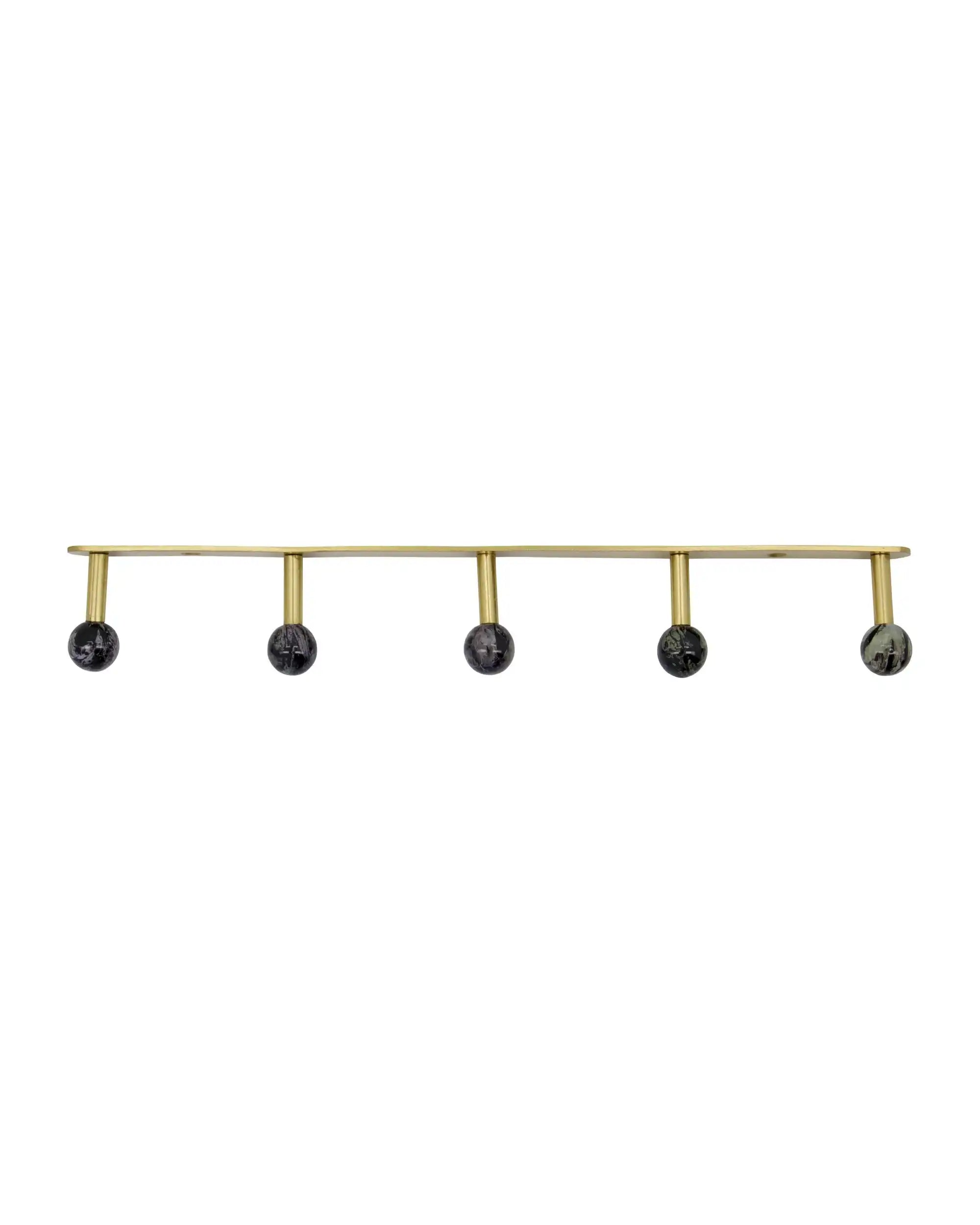 Geef je hal, keuken of slaapkamer een stijlvolle upgrade met de Rack Ball Zwart van House Doctor. Deze handgemaakte kapstok is uitgevoerd in modern zwart metaal en voorzien van vijf speelse, ronde knoppen. Hierdoor combineert hij moeiteloos functionaliteit en design in één uniek item.