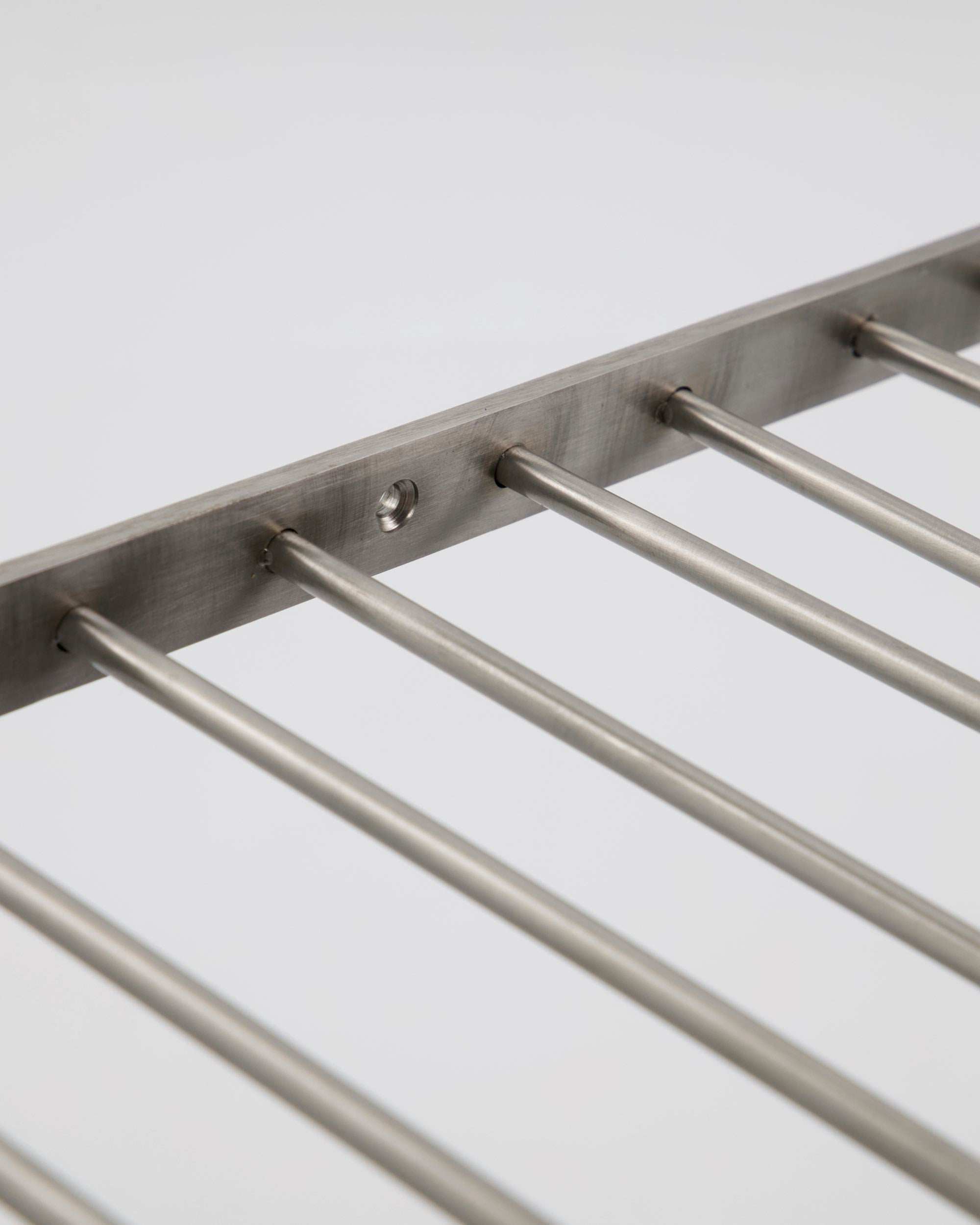 Geef jouw keuken of thuisbar een stijlvolle upgrade met het Stilio wijnglasrek van House Doctor. Dit rek van 30 cm breed is gemaakt van hoogwaardig roestvrij staal met een verfijnde, antiek zilveren afwerking. Het minimalistische ontwerp oogt luchtig en elegant, terwijl het ruimte biedt aan meerdere wijnglazen die je ondersteboven kunt ophangen – praktisch én decoratief.