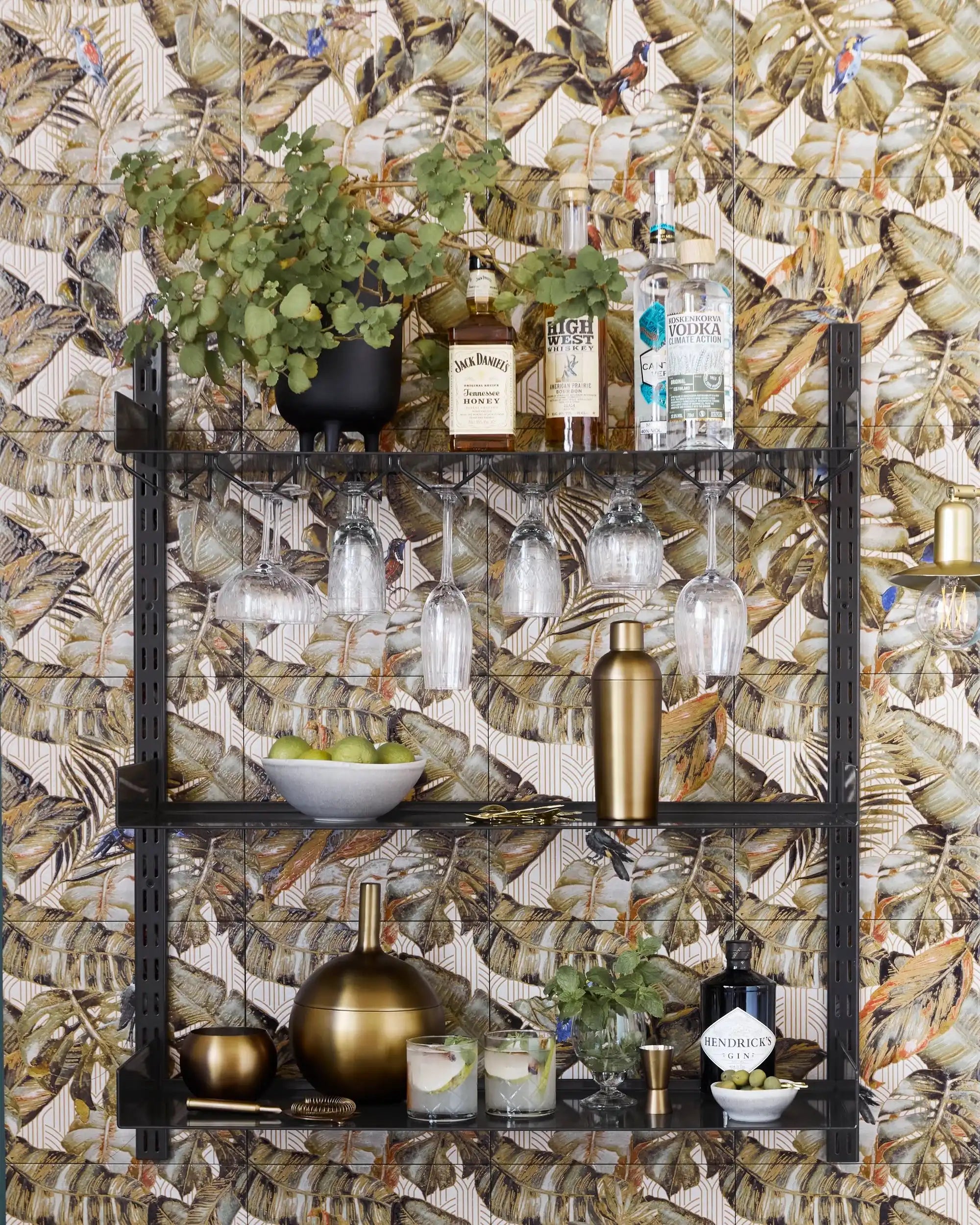 Gemaakt van robuust zwart metaal en vakkundig afgewerkt met strakke lijnen. Met een breedte van 84,8 cm, hoogte van 11 cm en diepte van 30,8 cm biedt dit rek ruimte én uitstraling zonder te domineren. Het modulaire ontwerp maakt het mogelijk om meerdere units moeiteloos te combineren tot een persoonlijk barmeubel.