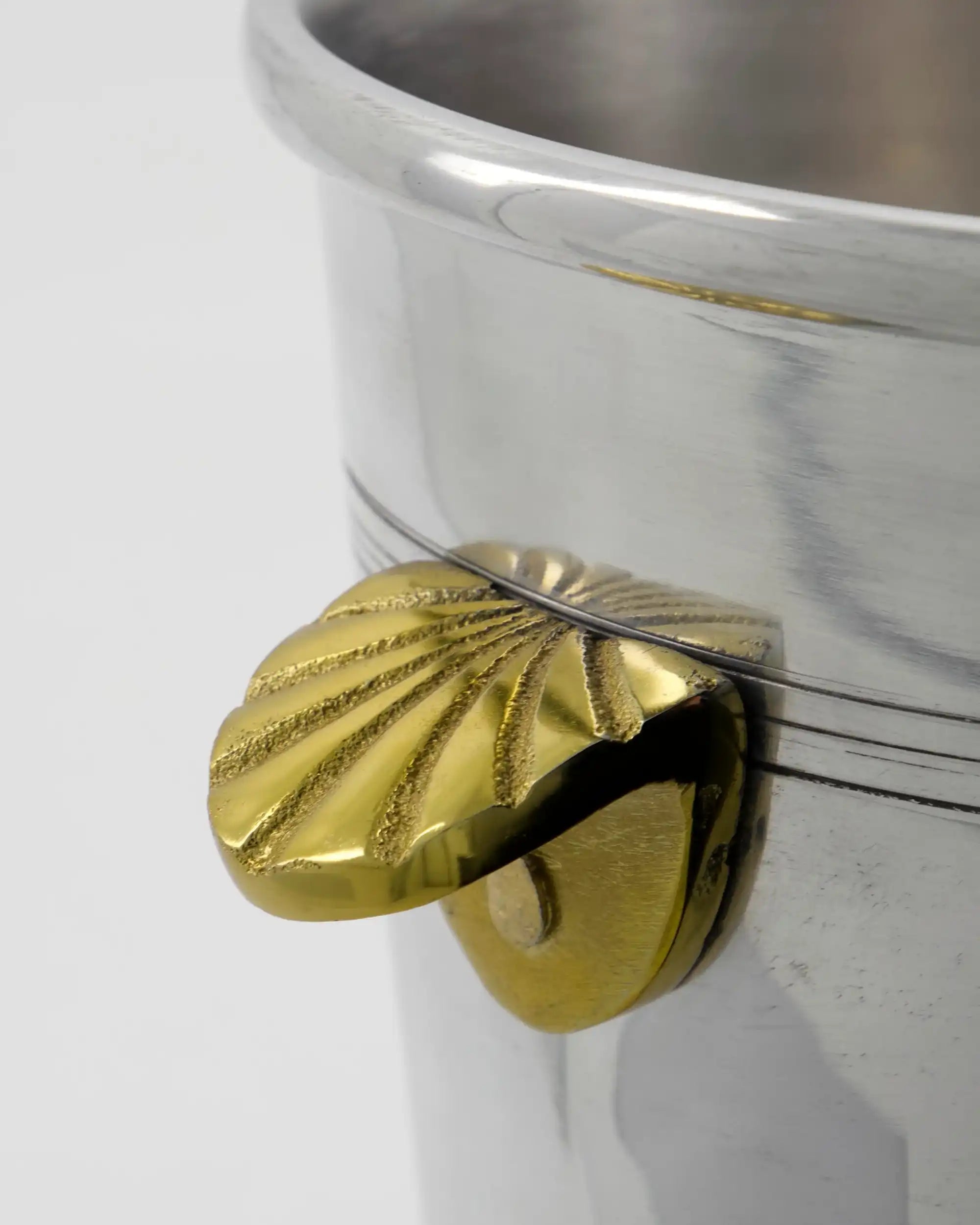 Geef jouw tafel of dressoir direct een vleugje klasse met de Wijnkoeler Vind in een prachtige antiek zilveren afwerking. Deze handgemaakte eyecatcher van House Doctor is vervaardigd uit hoogwaardig aluminium en straalt met zijn elegante vormgeving en gouden schelpvormige handgrepen pure luxe uit. Perfect om je favoriete wijnen fris en stijlvol te presenteren tijdens een diner of borrel.