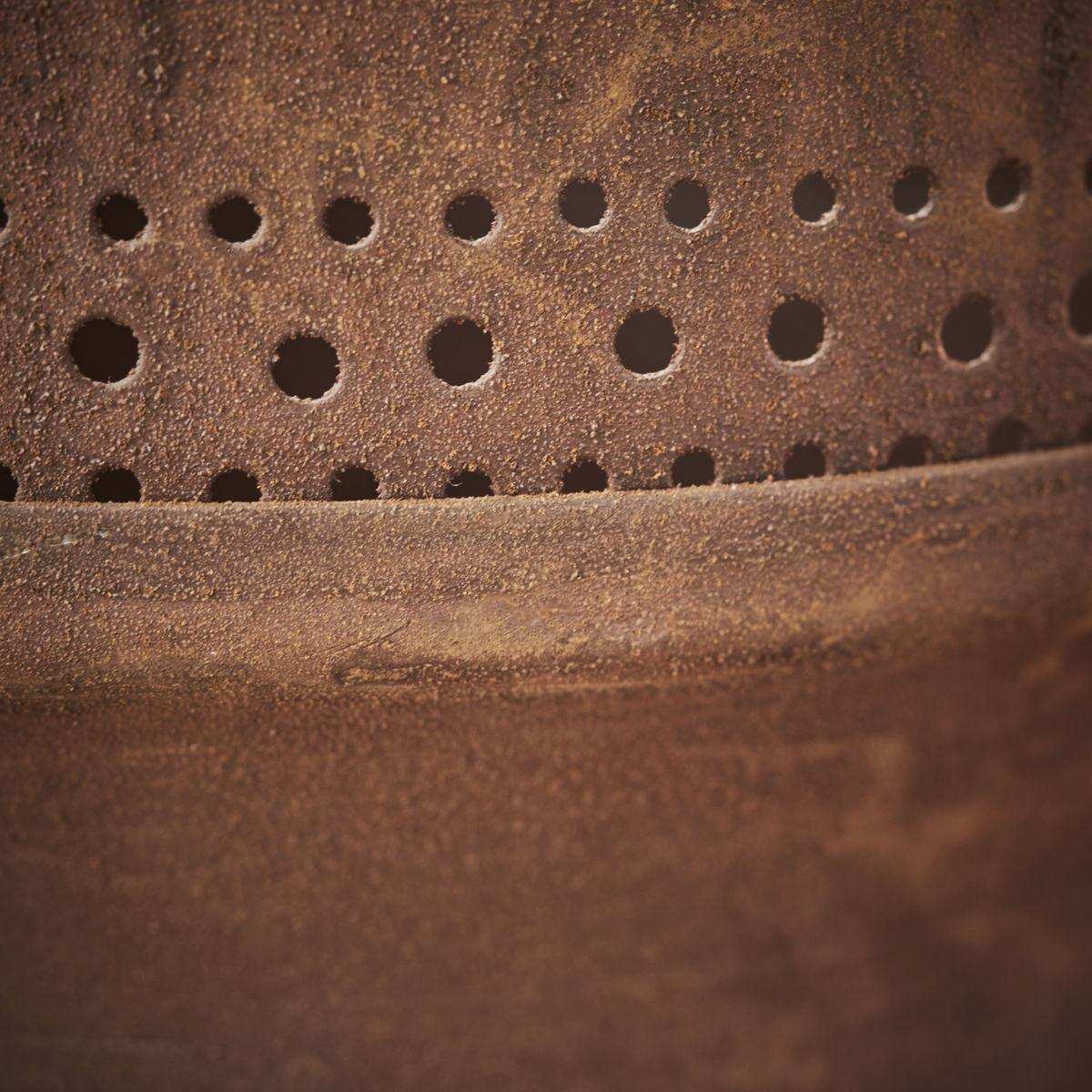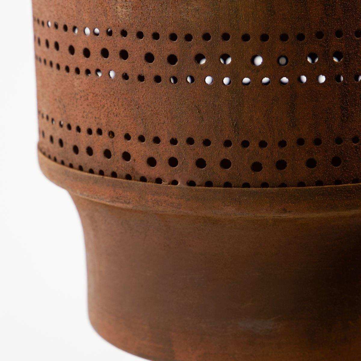 Het House Doctor Windlicht Kuta gebrand rood 27cm is een prachtig decoratief item dat warmte en sfeer toevoegt aan je interieur. Met een hoogte van 27 cm en een diameter van 15 cm, is dit windlicht groot genoeg om een opvallend accent te zijn in elke kamer. Het windlicht is handgemaakt van ijzer en heeft een fascinerende gebrande rode tint die extra diepte en karakter geeft aan je woonruimte. Het geperforeerde patroon zorgt voor een prachtig lichtspel wanneer het windlicht wordt verlicht, waardoor een uitnodigende en sfeervolle ambiance ontstaat.